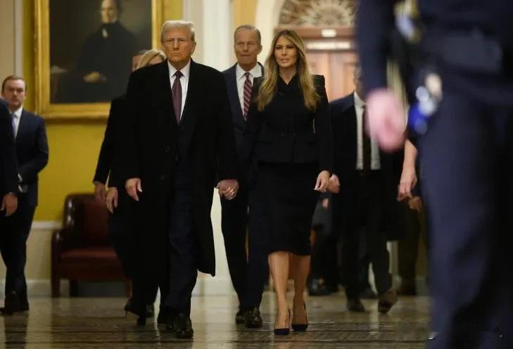梅拉尼娅和丈夫特朗普抵达国会山,两人将一同参加吉米·卡特的国葬。 51岁的梅拉尼