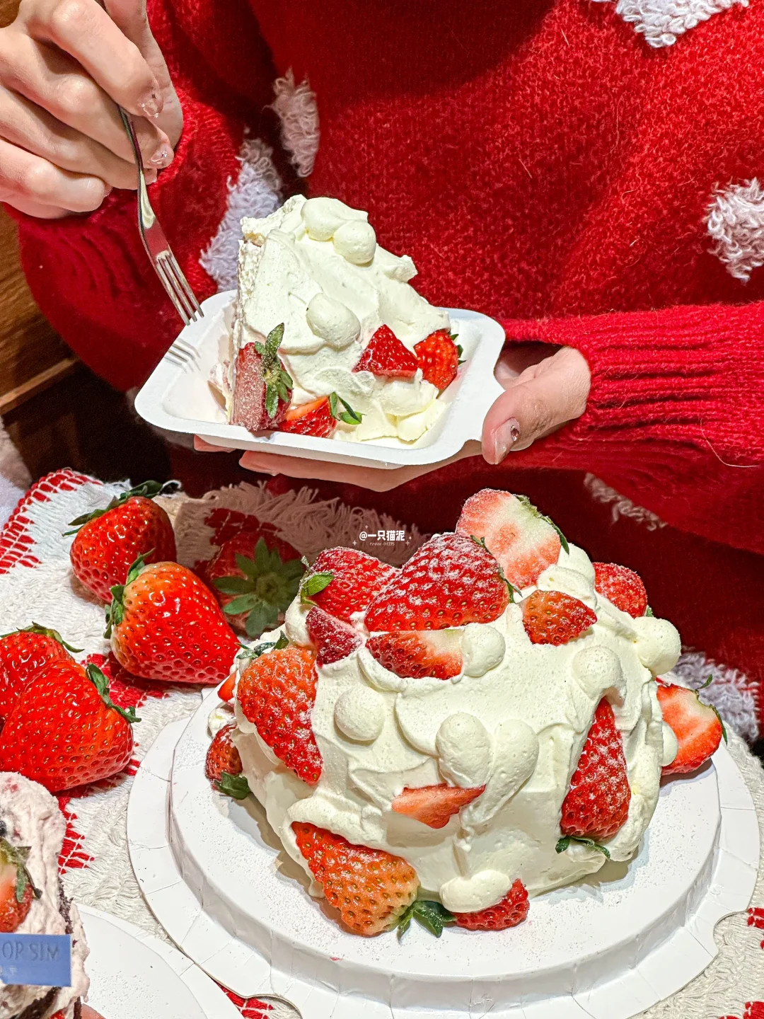 冬天必不可少的草莓蛋糕🍓幸福又具像化了