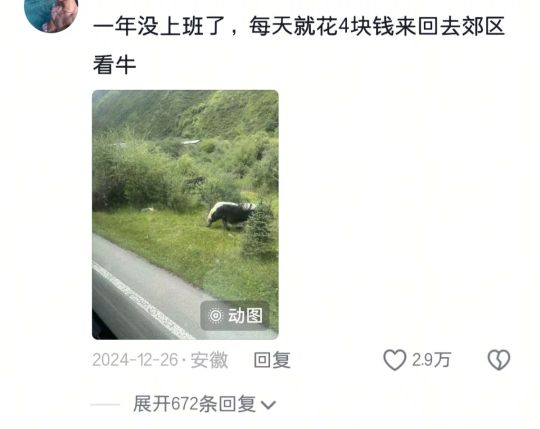 一年没上班了,每天就花4块钱来回去郊区看牛