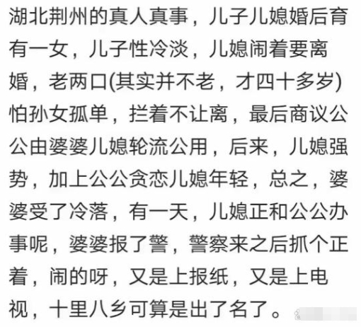 记得我十几岁的时候我妈从娘家回来就一直唠唠叨叨的说丢人,一问才知道她娘家那边都传开了说我大舅跟他儿媳妇也就是我表嫂睡一起了!当时我三观都碎了,没想第二年我表嫂还生了个儿子,那边的人都说那个孩子是我大舅的不知道真假[捂脸哭][捂脸哭][捂脸哭]