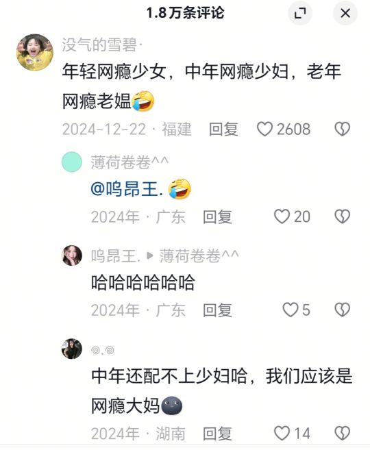 年轻网瘾少女,中年网瘾少妇,老年网瘾老媪
