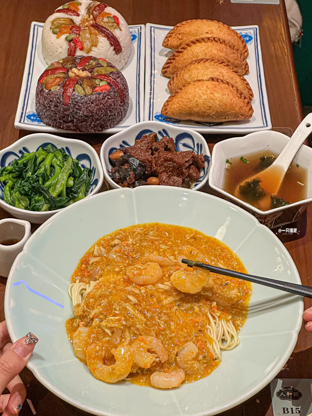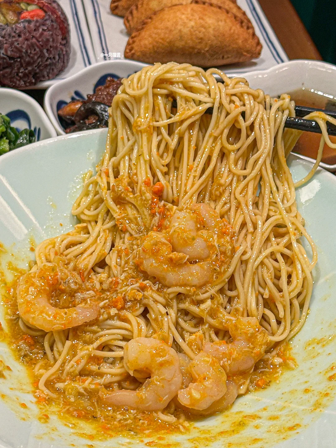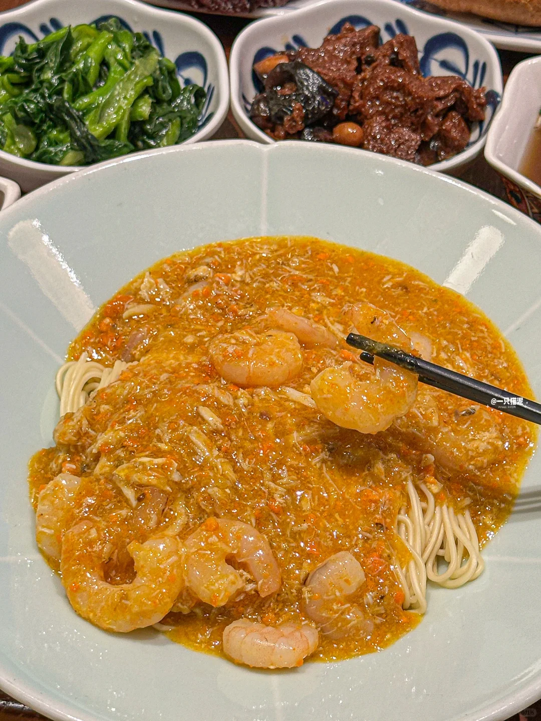 蟹粉虾仁面🍜,蟹黄蟹肉裹紧面条,入口咸鲜香甜。