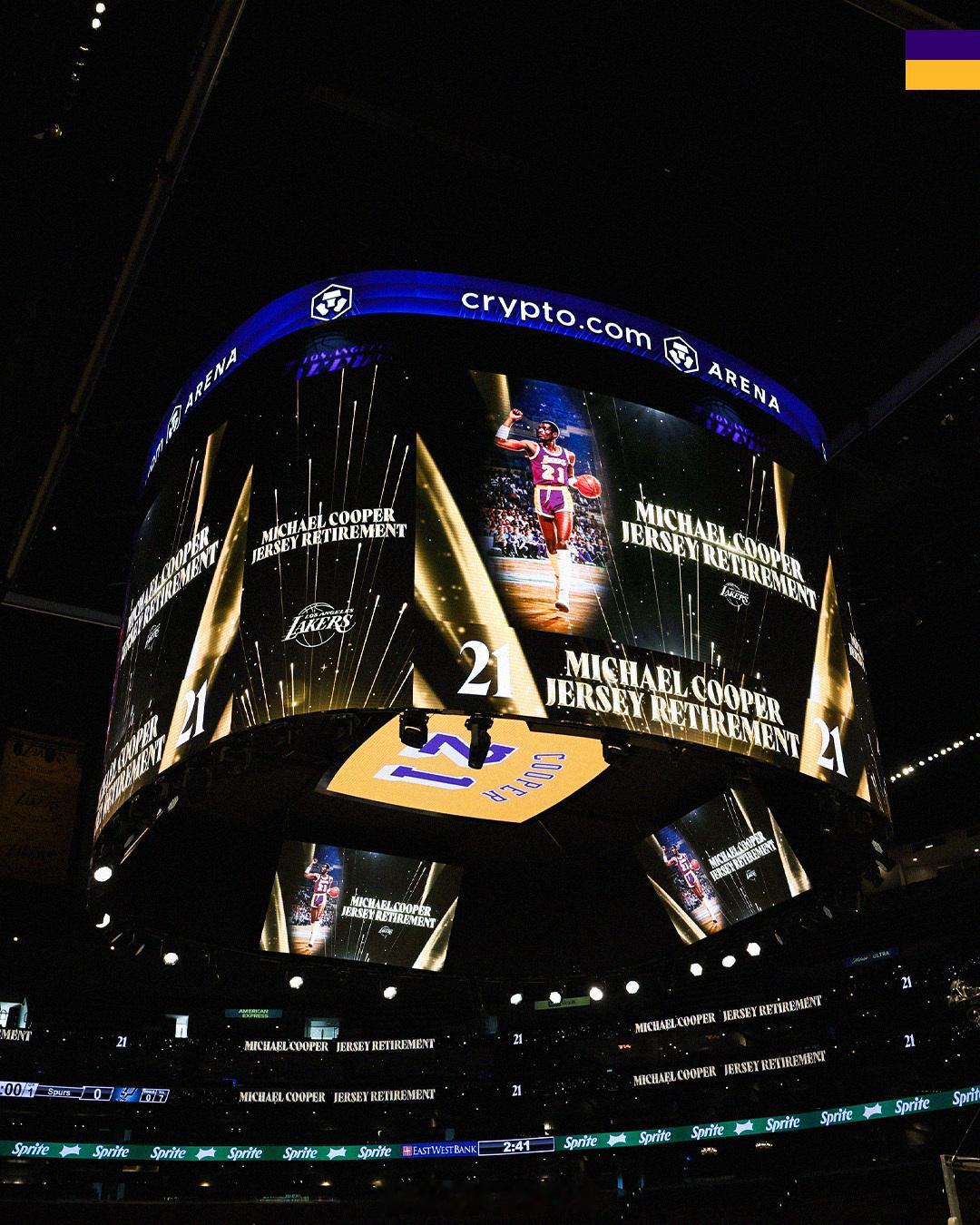 今晚湖人队向洛杉矶的传奇人物迈克尔·库珀致敬,见证他的球衣升上天花板。