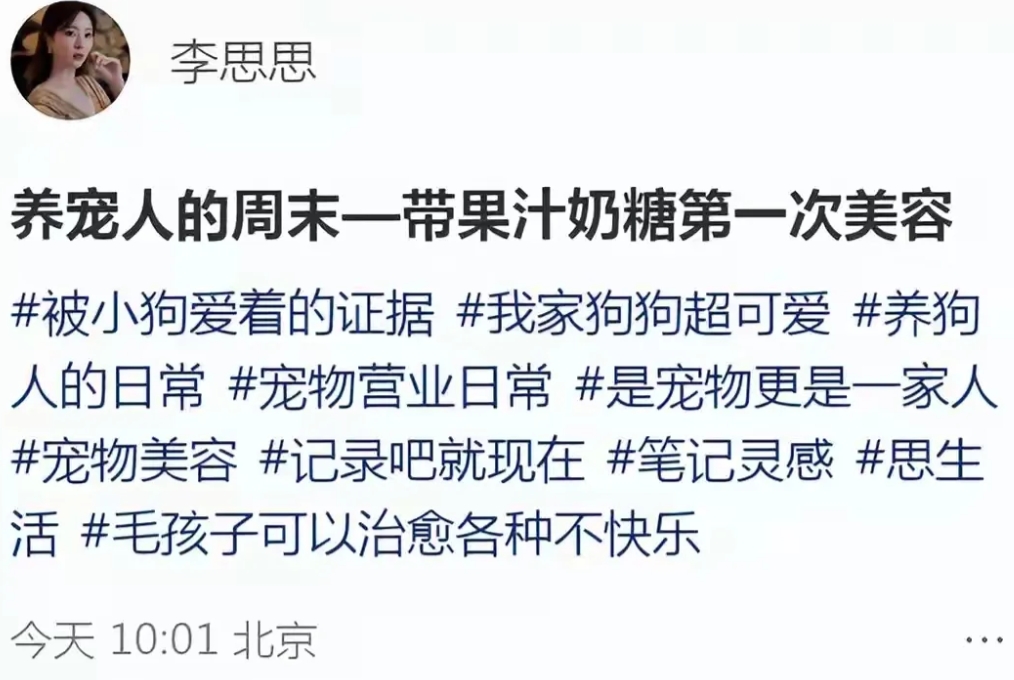李思思真是精力旺盛,不仅带两个儿子,还忙自媒体工作,居然还有空养狗,还带着小狗去做美容。儿子取名金宝元宝,穿着一样的棉服,乍看还以为双胞胎,李思思也是幸福美满,人生赢家。