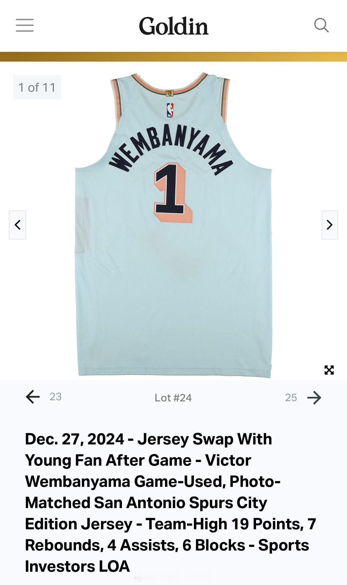 2024年12月27日 - 比赛后文班亚马与一位年轻粉丝交换球衣 文班亚马球衣被球迷出售