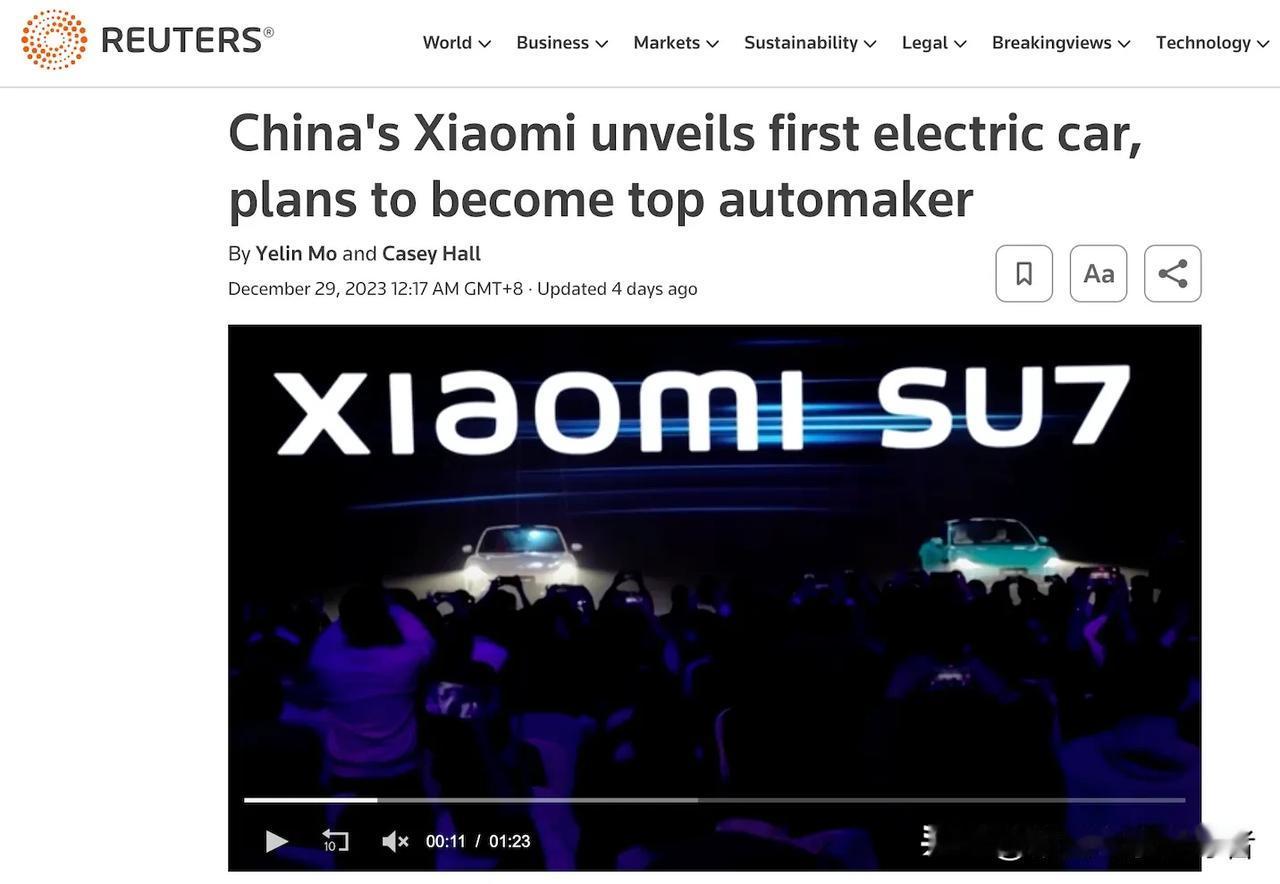 小米汽车SU7获国际媒体点赞:中国智能制造的全球突破。 小米汽车SU7的发布,