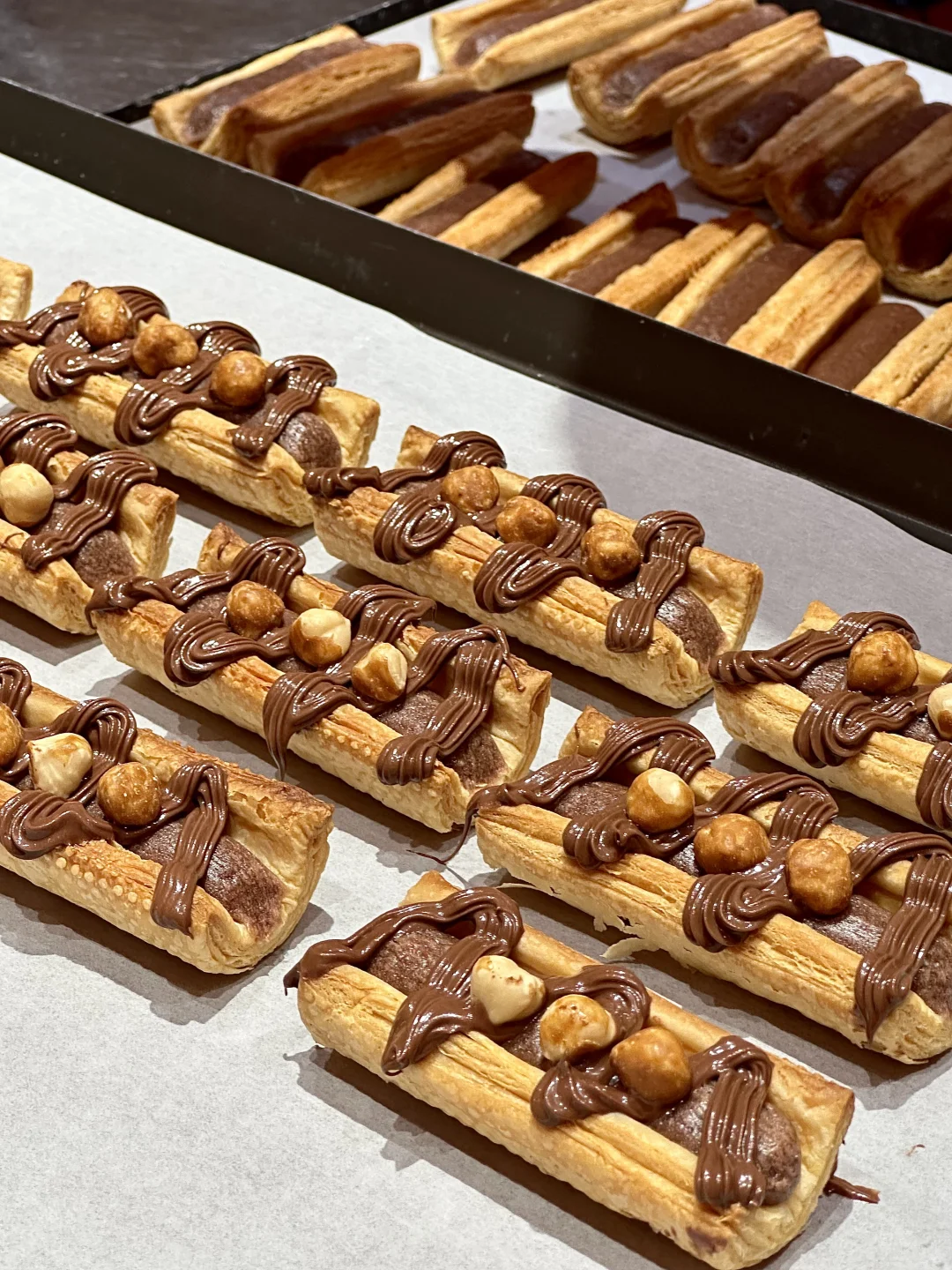 拿破仑很酥脆!一口下去掉渣!中间挤满了榛果芝士馅,上面是巧克力酱!搭配上坚果仁,炫完一个又一个!根本停不下来哈哈哈