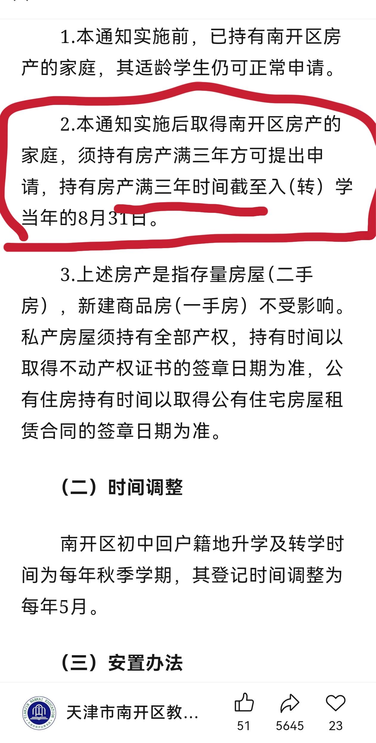 南开河西初中转学新政!须提前三年买房!