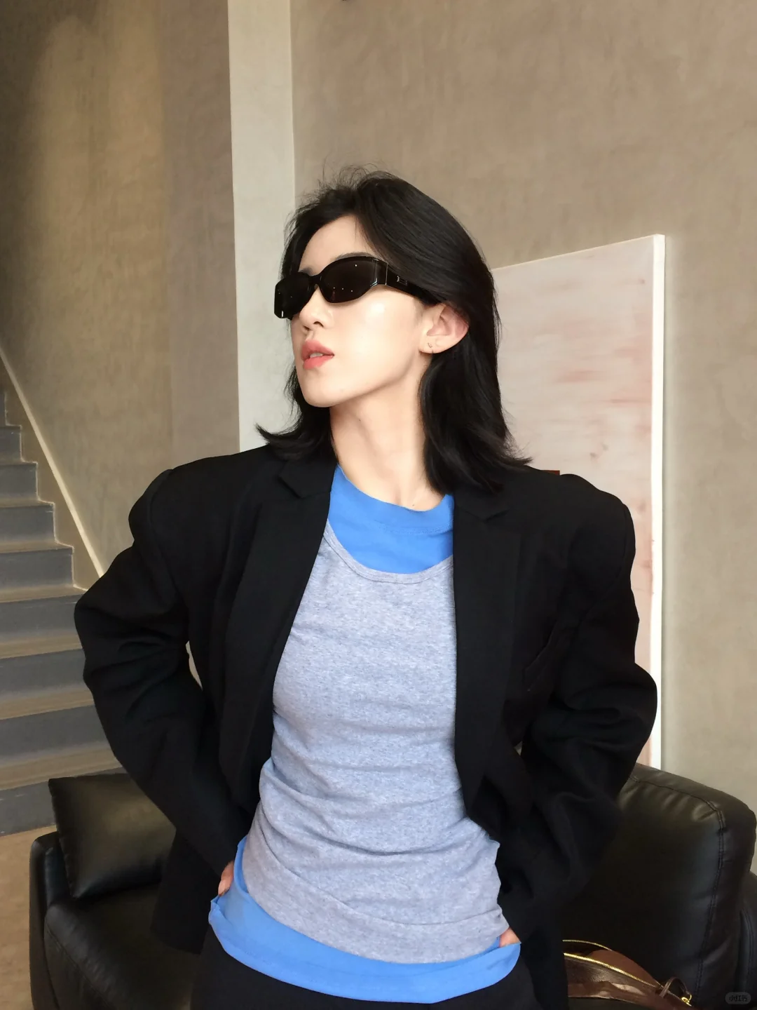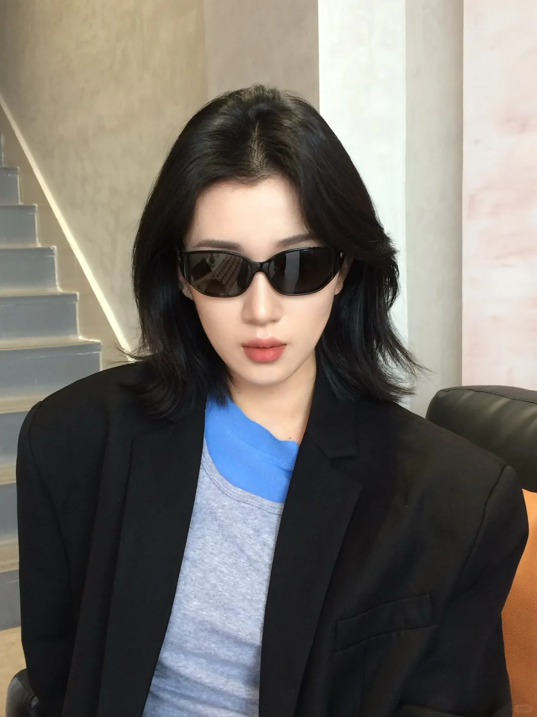 墨镜和短发真的适配度很高 很凸显五官的英气和高智感