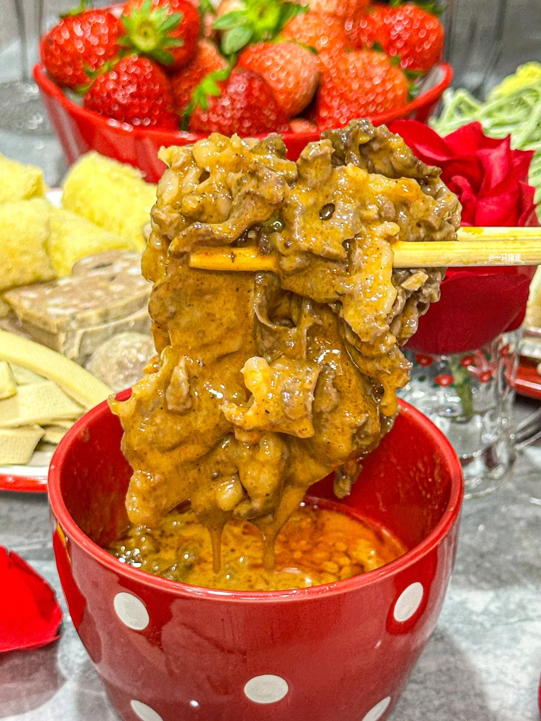 不想出门吃饭,他订了左庭右院鲜牛肉火锅外卖🎁。