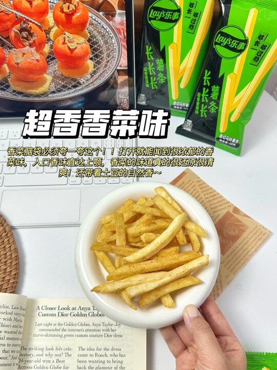 香菜脑袋必须夸一夸这个!!打开就能闻到很浓郁的香菜味,入口香味直达上颚,香菜味道真的很清爽很还原!!还带着土豆的自然香!