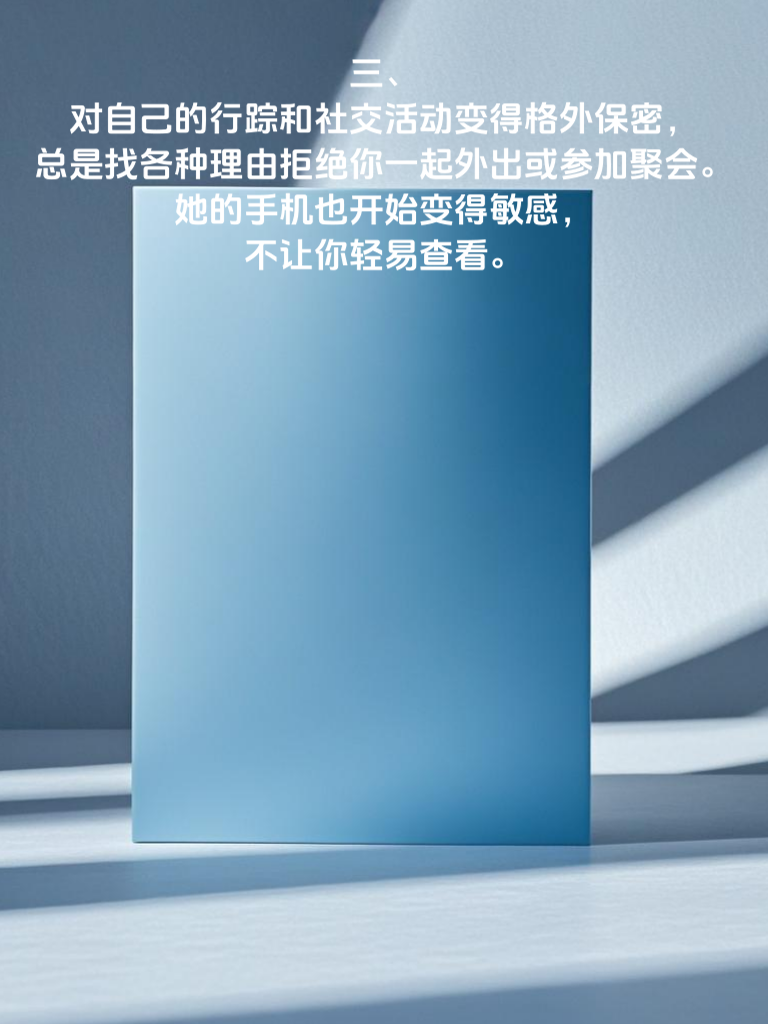 一、突然变得冷漠疏离,对你的关心不再回应,这可能是她心有所属的信号。以前她会热情地与你分享生活的点滴,而现在却仿佛筑起了一道墙。 二、开始频繁与某个异性联系,聊天时间变长,甚至会背着你偷偷打电话或发信息。她的眼神中可能会闪过一丝不易察觉的慌乱,当你问起时,她却闪烁其词。 三、对自己的行踪和社交活动变得格外保密,总是找各种理由拒绝你一起外出或参加聚会。她的手机也开始变得敏感,不让你轻易查看。 四、曾经对你充满爱意的举动逐渐减少,比如不再为你准备早餐、不再给你送小礼物等。她的心思似乎已经不在你身上,更多地放在了那个让她心动的人身上。