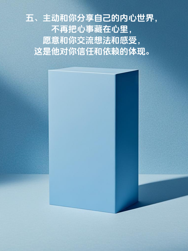 一、突然开始主动报备自己的行踪,不再像以前那样行踪神秘,这表明他开始在意你的感受,希望让你了解他的生活。 二、对你的态度变得更加温柔体贴,不再像之前那样急躁或冷漠,会关心你的情绪和需求,比如主动问你今天过得怎么样。 三、开始参与你感兴趣的事情,愿意花时间陪你做你喜欢的活动,不再只专注于自己的事情,这是他想要靠近你、融入你生活的表现。 四、会更加注重自己的形象和穿着,希望在你面前展现出最好的一面,这说明他对你有了特殊的情感,想要吸引你的注意。 五、主动和你分享自己的内心世界,不再把心事藏在心里,愿意和你交流想法和感受,这是他对你信任和依赖的体现。