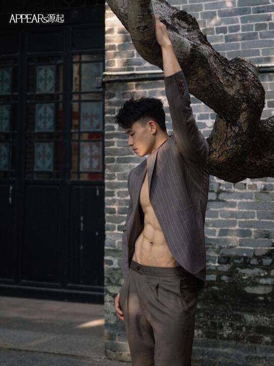 肌肉男的日常 腹肌 穿着西装去旅行 商务西装 正装