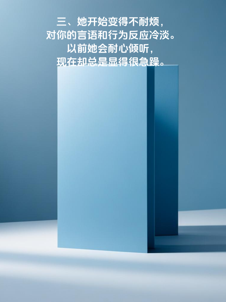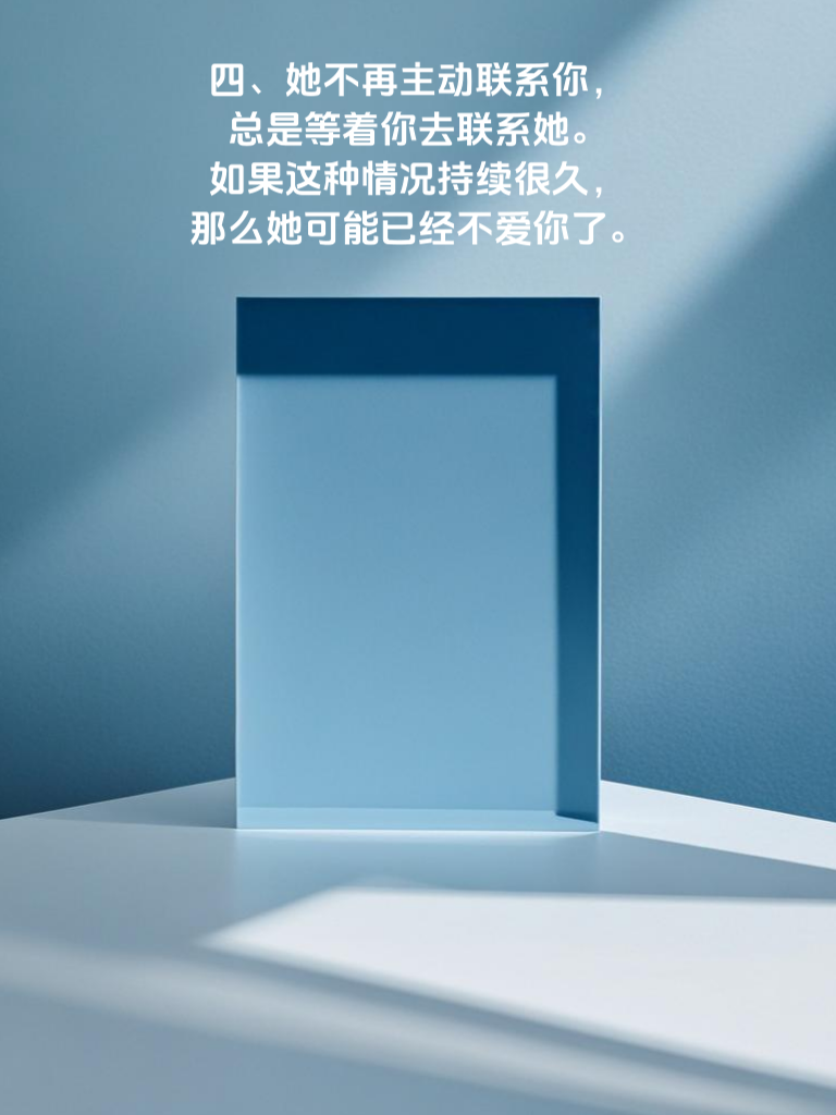一、她开始频繁找借口拒绝与你见面,不再像以前那样期待和你在一起的时光。这可能意味着她对你的感情在逐渐变淡。 二、她对你的事情不再关心,以前会问东问西,现在却漠不关心。这是她内心已经不再爱你的一个明显迹象。 三、她开始变得不耐烦,对你的言语和行为反应冷淡。以前她会耐心倾听,现在却总是显得很急躁。 四、她不再主动联系你,总是等着你去联系她。如果这种情况持续很久,那么她可能已经不爱你了