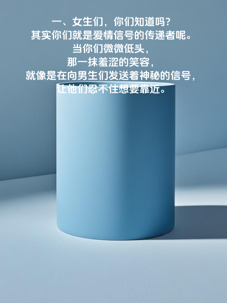一、女生们,你们知道吗?其实你们就是爱情信号的传递者呢。当你们微微低头,那一抹羞涩的笑容,就像是在向男生们发送着神秘的信号,让他们忍不住想要靠近。 二、比如不经意间的眼神交汇,那瞬间的电闪雷鸣,仿佛能在彼此心中激起千层浪。这就是女生独特的撩男心法,用眼神传递着内心的情感。 三、还有那轻轻的触碰,比如不经意间的手臂相碰,那小小的接触却能让男生的心瞬间跳动加速,这就是女生的魅力所在呀。 四、女生们要学会巧妙地运用这些小细节,让男生们在不知不觉中被你们吸引,从而开启一段美好的爱情之旅。