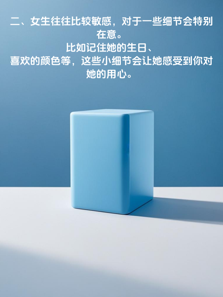 一、女生喜欢被关注和赞美,一句简单的‘你今天很漂亮’就能让她们开心一整天。不要吝啬你的赞美,这是拉近你们距离的好方法。 二、女生往往比较敏感,对于一些细节会特别在意。比如记住她的生日、喜欢的颜色等,这些小细节会让她感受到你对她的用心。 三、女生需要安全感,在感情中要让她知道你是可靠的。不要轻易许下无法兑现的承诺,言行一致才能让她放心。 四、女生喜欢被尊重,不要在公共场合贬低她或者忽视她的意见。尊重她的选择和决定,她会更愿意和你相处。 五、女生的情绪变化比较大,要学会理解和包容。当她心情不好时,给她一个温暖的拥抱,陪她度过难关。
