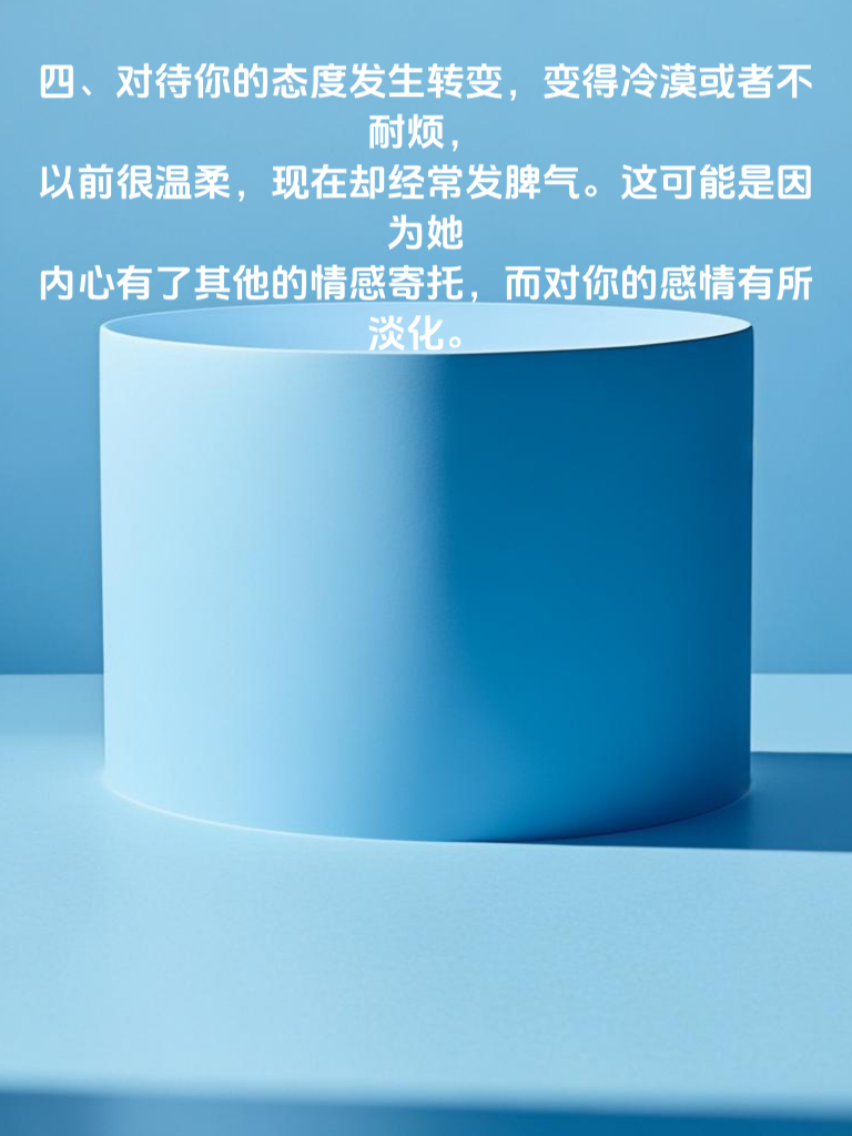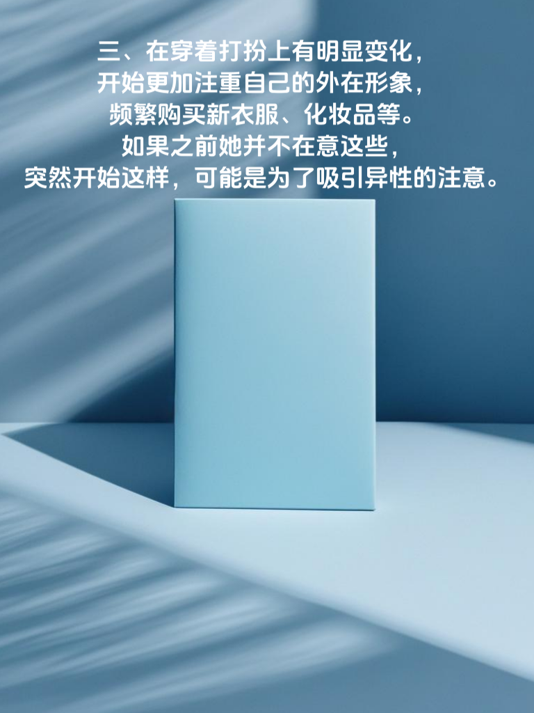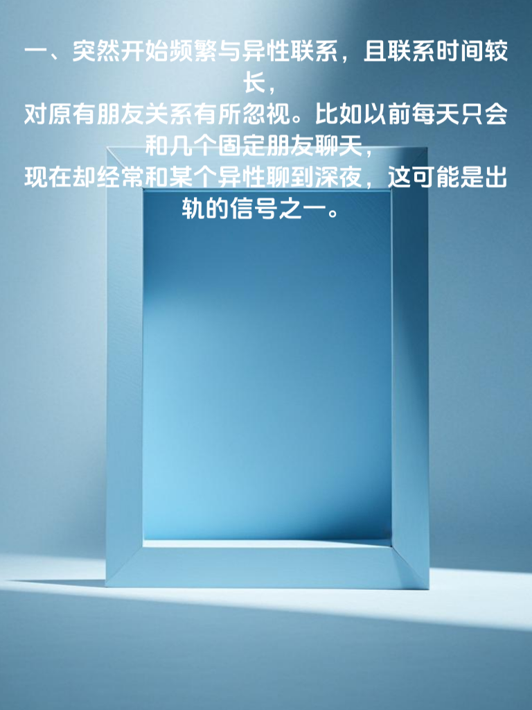 一、突然开始频繁与异性联系,且联系时间较长,对原有朋友关系有所忽视。比如以前每天只会和几个固定朋友聊天,现在却经常和某个异性聊到深夜,这可能是出轨的信号之一。 二、对自己的行踪变得遮遮掩掩,经常以各种理由推脱和你一起的时间,却又说不出具体去做了什么。比如明明说去加班,却被你发现其实是和其他异性在一起。 三、在穿着打扮上有明显变化,开始更加注重自己的外在形象,频繁购买新衣服、化妆品等。如果之前她并不在意这些,突然开始这样,可能是为了吸引异性的注意。 四、对待你的态度发生转变,变得冷漠或者不耐烦,以前很温柔,现在却经常发脾气。这可能是因为她内心有了其他的情感寄托,而对你的感情有所淡化。 五、手机使用变得更加谨慎,经常背着你接电话或者看信息,一旦你靠近就会迅速收起手机。这种行为很可能是在隐瞒与异性的联系。
