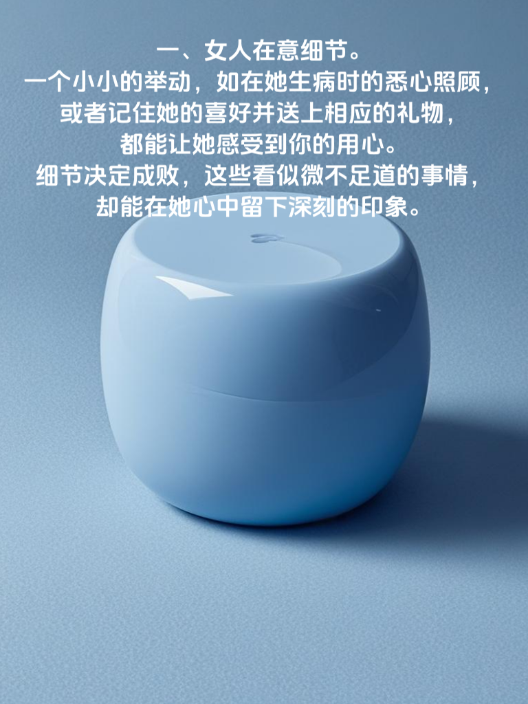 一、女人在意细节。一个小小的举动,如在她生病时的悉心照顾,或者记住她的喜好并送上相应的礼物,都能让她感受到你的用心。细节决定成败,这些看似微不足道的事情,却能在她心中留下深刻的印象。 二、女人在意陪伴。忙碌的生活让她们常常感到孤独,此时你的陪伴就显得尤为重要。一起看电影、散步、聊天,这些简单的活动能让她感受到你的关爱和温暖。 三、女人在意尊重。尊重她的想法、感受和选择,不要试图去改变她。每个人都有自己的生活方式和价值观,只有尊重她,她才会愿意与你相处。 四、女人在意安全感。在她遇到困难时,你要能够挺身而出,给她足够的安全感。让她知道,无论发生什么事情,你都会在她身边支持她。