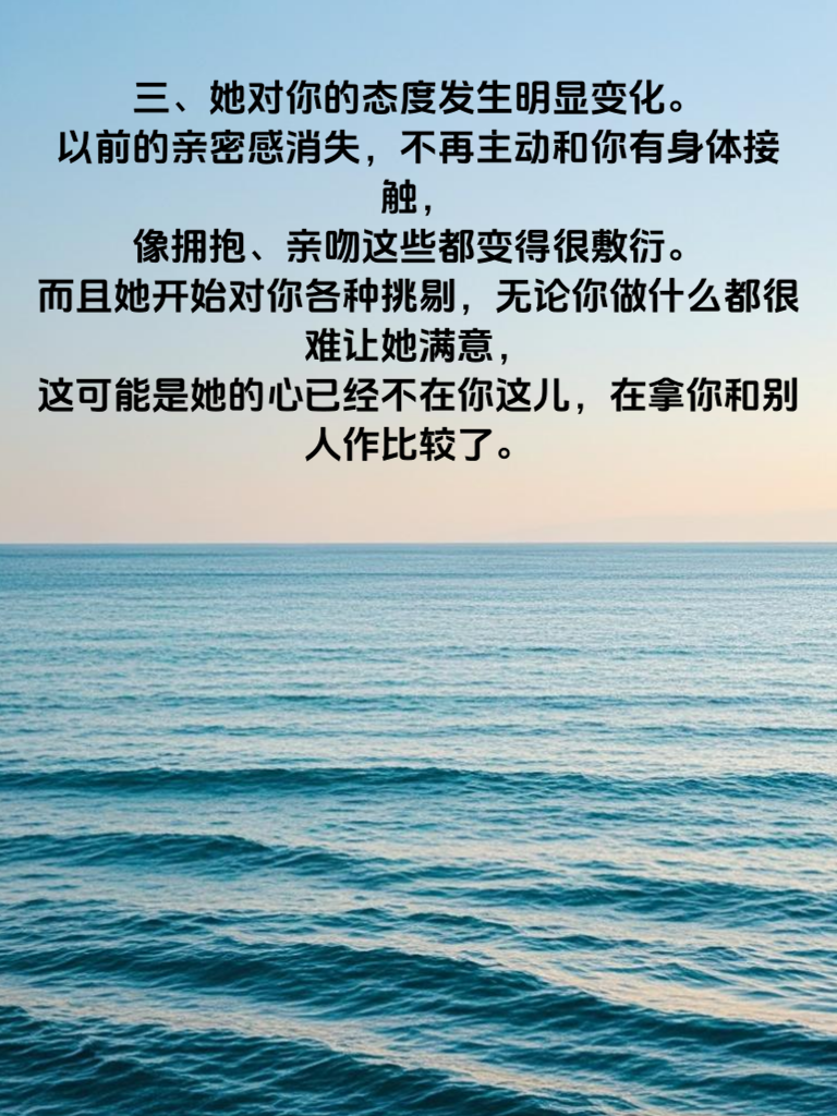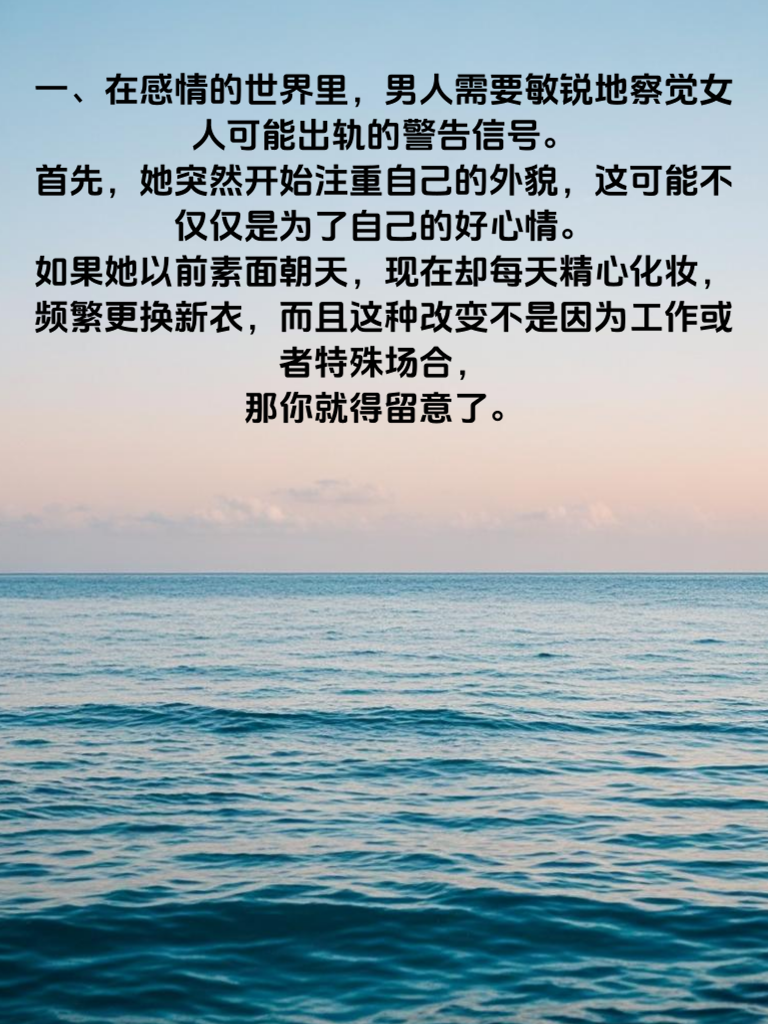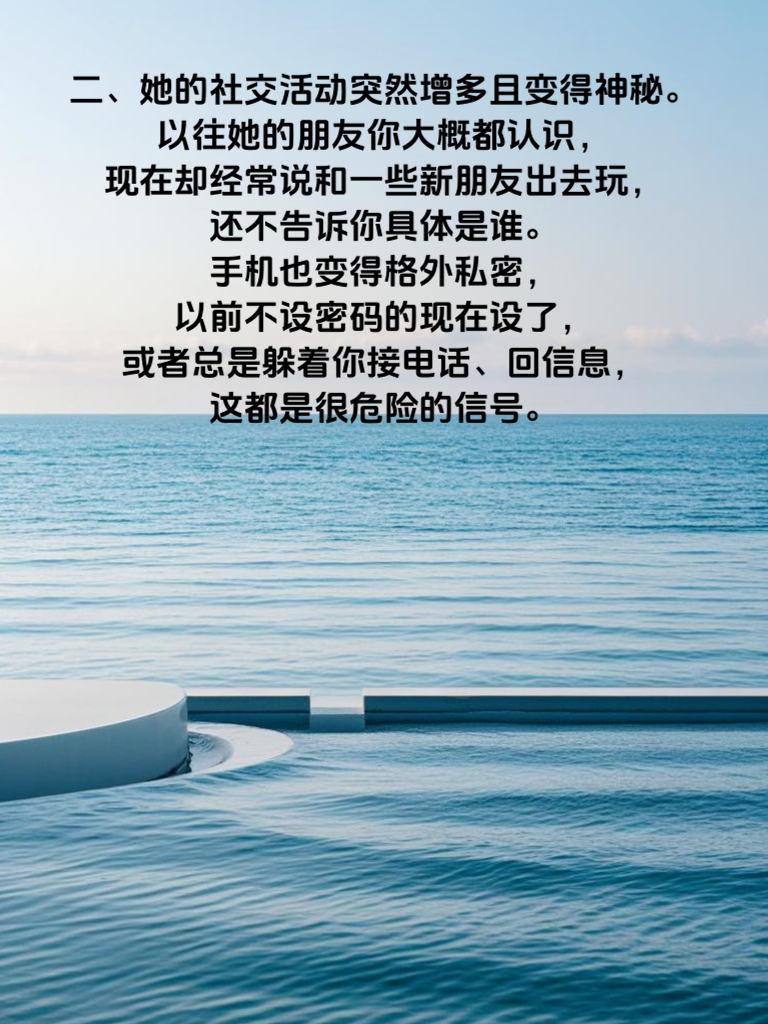 一、在感情的世界里,男人需要敏锐地察觉女人可能出轨的警告信号。首先,她突然开始注重自己的外貌,这可能不仅仅是为了自己的好心情。如果她以前素面朝天,现在却每天精心化妆,频繁更换新衣,而且这种改变不是因为工作或者特殊场合,那你就得留意了。 二、她的社交活动突然增多且变得神秘。以往她的朋友你大概都认识,现在却经常说和一些新朋友出去玩,还不告诉你具体是谁。手机也变得格外私密,以前不设密码的现在设了,或者总是躲着你接电话、回信息,这都是很危险的信号。 三、她对你的态度发生明显变化。以前的亲密感消失,不再主动和你有身体接触,像拥抱、亲吻这些都变得很敷衍。而且她开始对你各种挑剔,无论你做什么都很难让她满意,这可能是她的心已经不在你这儿,在拿你和别人作比较了。