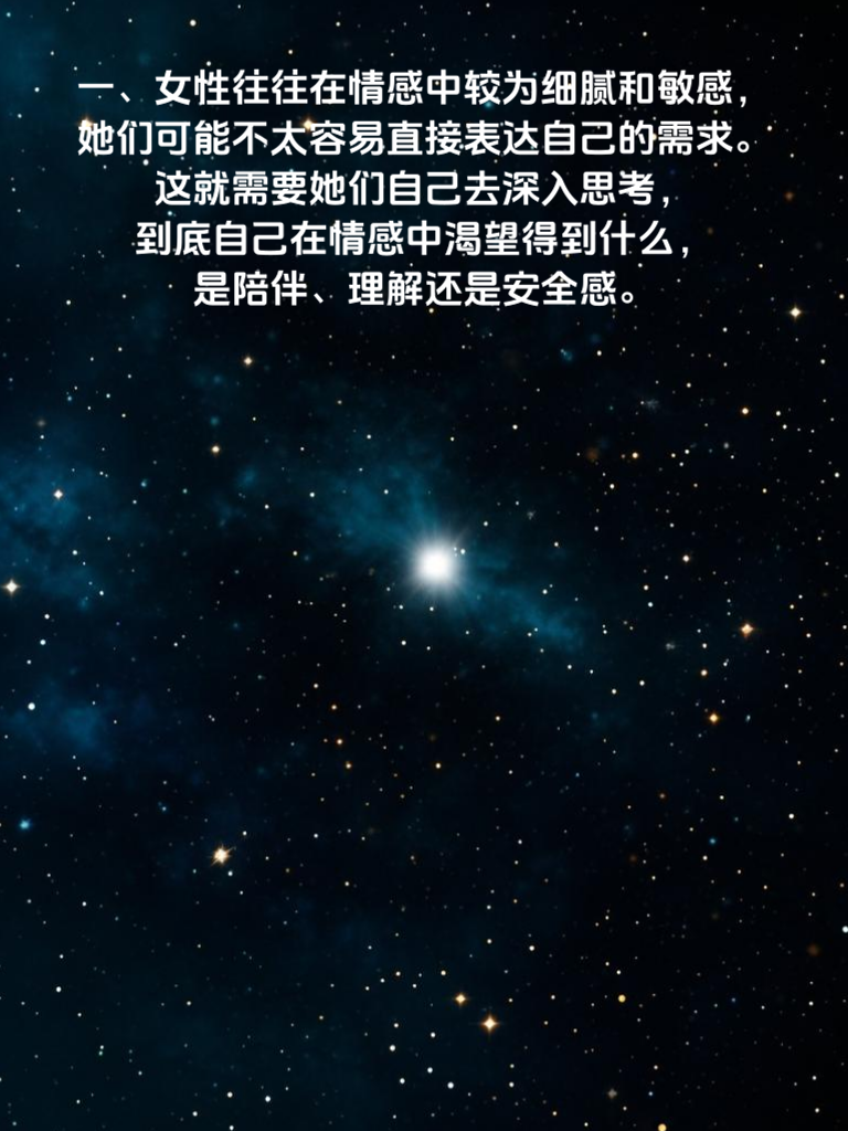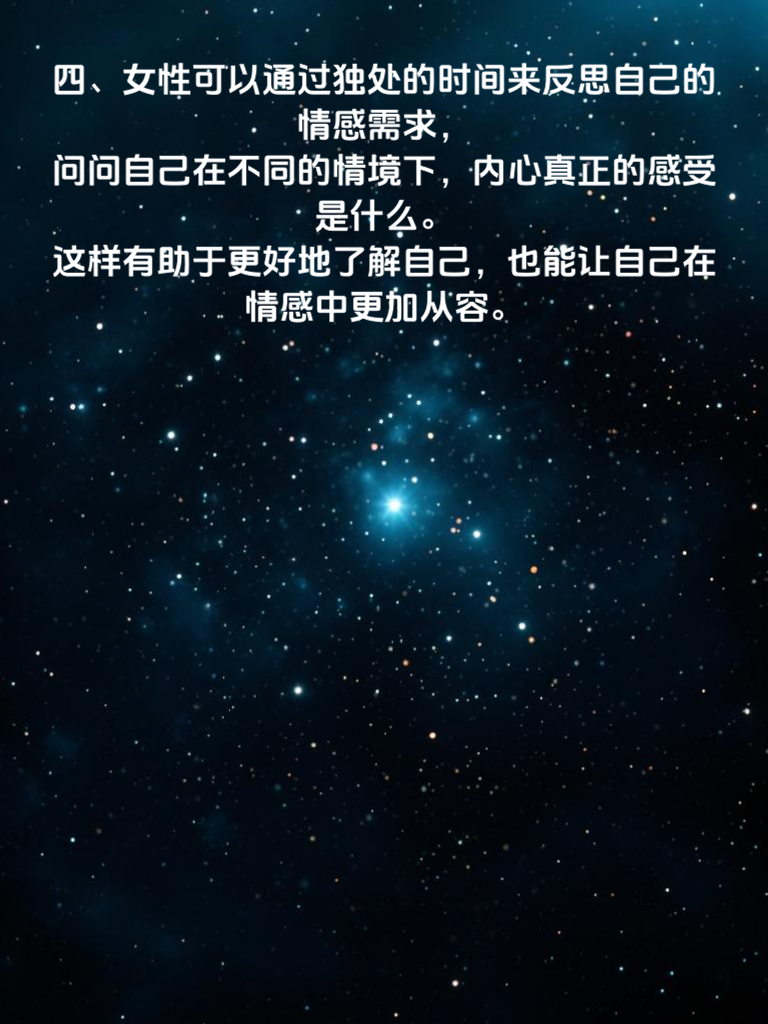 一、女性往往在情感中较为细腻和敏感,她们可能不太容易直接表达自己的需求。这就需要她们自己去深入思考,到底自己在情感中渴望得到什么,是陪伴、理解还是安全感。 二、很多时候,女性会被外界的声音所影响,而忽略了自己内心真正的需求。她们可能会为了迎合他人而改变自己,却忘记了自己最初的追求。 三、懂得自己的需求,才能在情感中更加自信和坚定。当你清楚自己想要什么时,就能够更好地与他人相处,也能避免一些不必要的烦恼。 四、女性可以通过独处的时间来反思自己的情感需求,问问自己在不同的情境下,内心真正的感受是什么。这样有助于更好地了解自己,也能让自己在情感中更加从容。