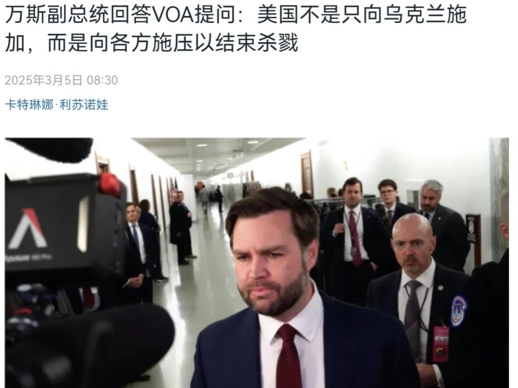 万斯话锋一转表示,我们仍然保留了对俄罗斯施加的多项制裁,俄罗斯的经济正在遭受困难。因此,我们的政策是向所有各方施加压力,以结束杀戮。很显然,万斯的这一表态,这是把美国解决俄乌问题的方案和盘托了出来。简而言之,美国的方案就是通过包括俄罗斯在内的各方施加压力,以实现停火,达成和平。