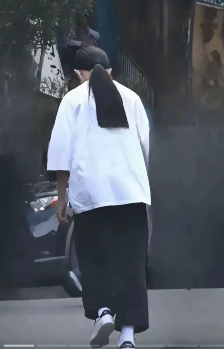 穿宽松的白T恤,简单的黑裤子,扎最低调的矮马尾。