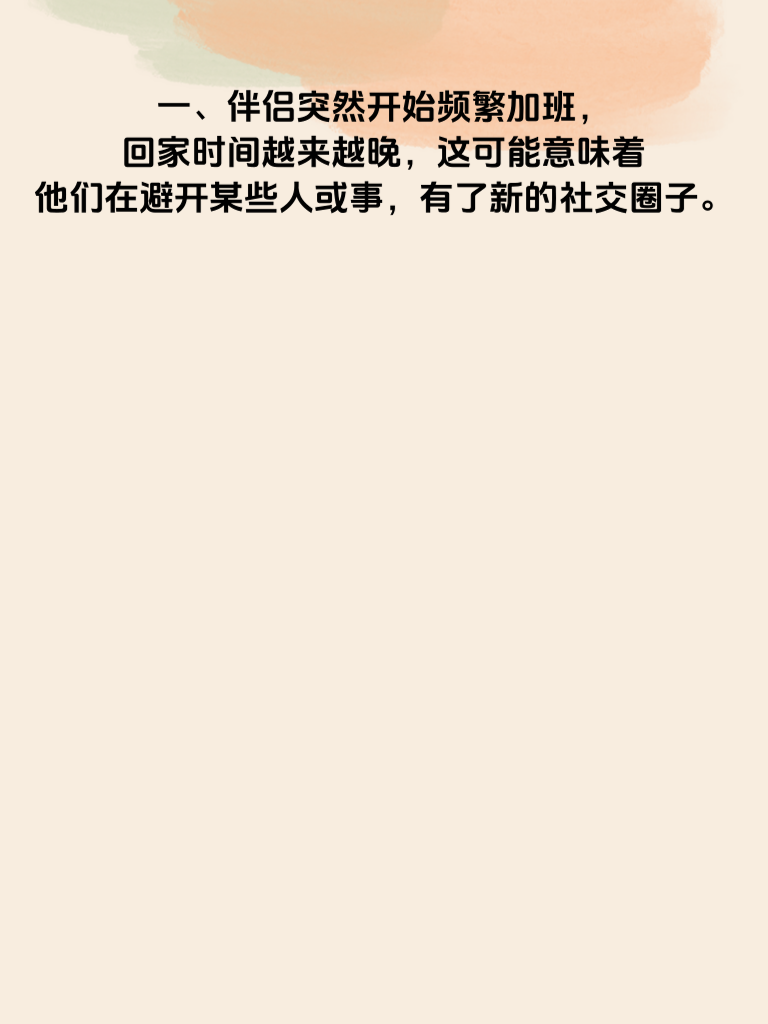 一、伴侣突然开始频繁加班,回家时间越来越晚,这可能意味着他们在避开某些人或事,有了新的社交圈子。