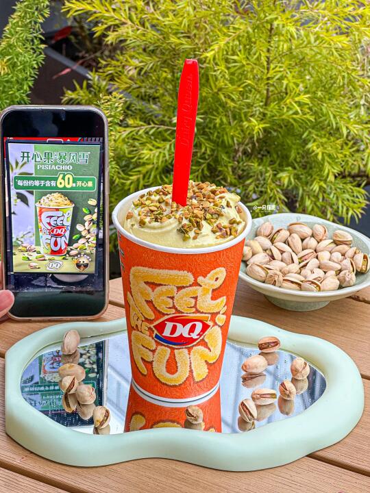 DQ一杯60颗开心果暴风雪DQ终于有开心果味了DQ新品DQ冰淇淋开心果脑袋DQ新品暴风雪开心果甜品治愈一切