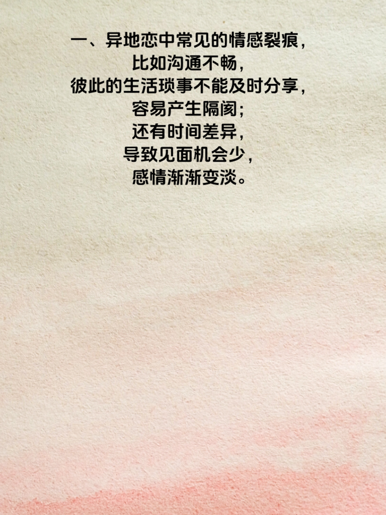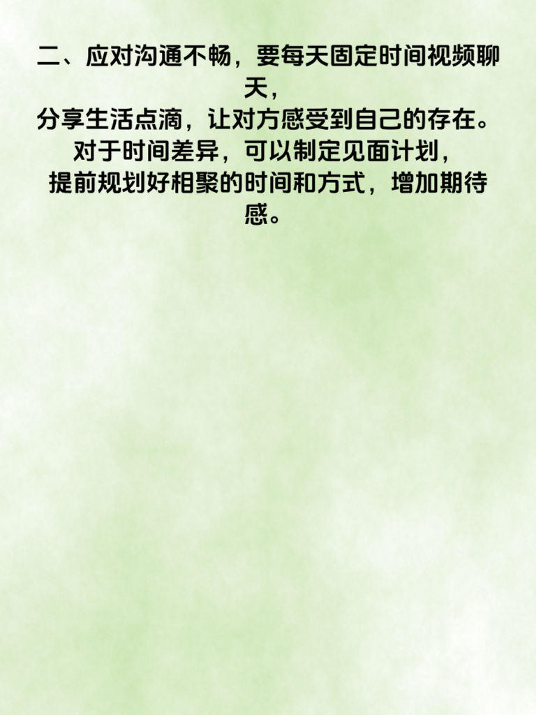 一、异地恋中常见的情感裂痕,比如沟通不畅,彼此的生活琐事不能及时分享,容易产生隔阂;还有时间差异,导致见面机会少,感情渐渐变淡。 二、应对沟通不畅,要每天固定时间视频聊天,分享生活点滴,让对方感受到自己的存在。对于时间差异,可以制定见面计划,提前规划好相聚的时间和方式,增加期待感。 三、另外,要学会给予对方足够的信任,不要因为距离而产生怀疑。可以通过送小礼物等方式表达自己的爱意,让对方知道自己在用心经营这段感情。 四、异地恋升温需要双方共同努力,保持积极的心态,相信距离不是问题,爱情可以跨越一切。