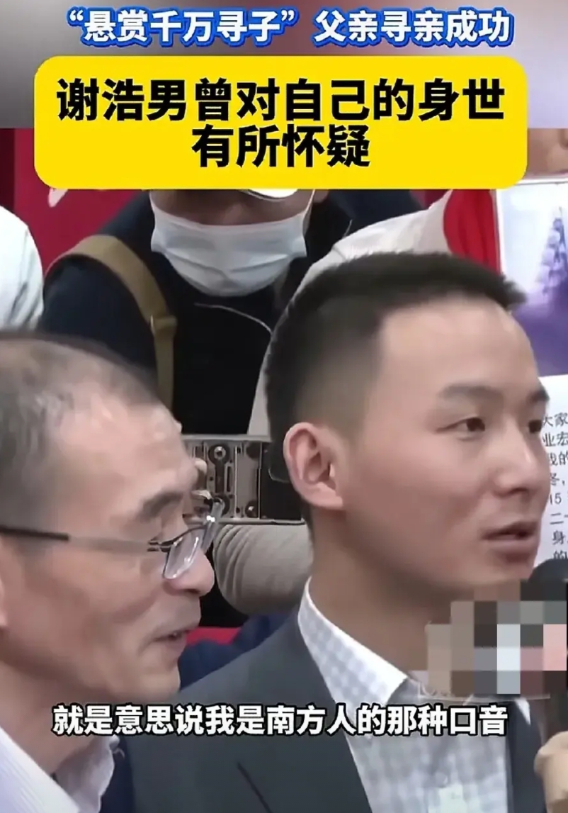 还好,兜兜转转24年,谢浩南回家了!一个研究生儿子回来了,谢爸爸十分开心,要知道谢爸爸只是初中毕业,他说没有找到浩南之前,都想过最坏的打算了,内心都不敢想,没想到啊,回来的儿子居然这么优秀!还是一个研究生![害羞]亲生的就是亲生的!确认关系后就很快做了决定,这就是血缘关系的力量!买别人孩子养的都好好看看吧,竹篮打水,一场空啊!