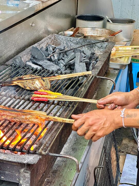 📍溫馨提示:夜晚七點半開始排長龍,想食要趁早!坐低記得叫老闆娘開支青岛啤酒,冰凍嘅啤酒配熱辣辣嘅燒烤,呢啲咪係版納嘅夜生活囉~🍻