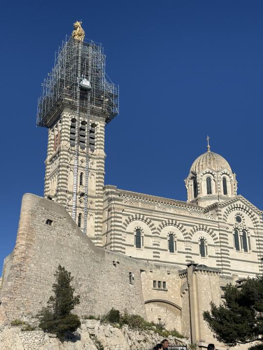 山顶的守护圣母圣殿正在维修,有好几层不开放