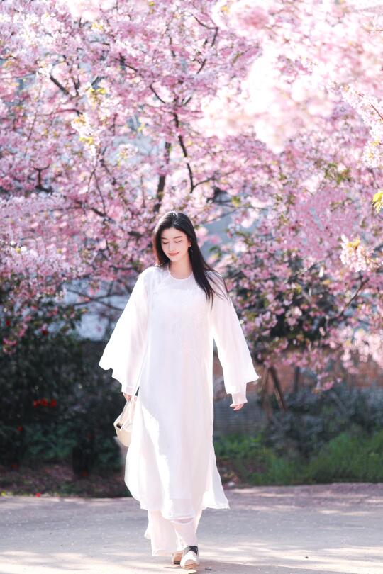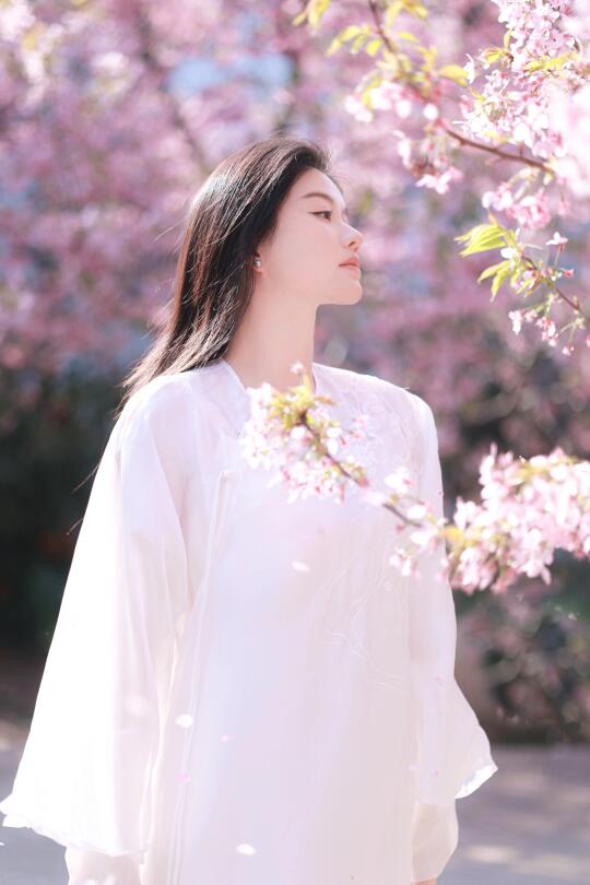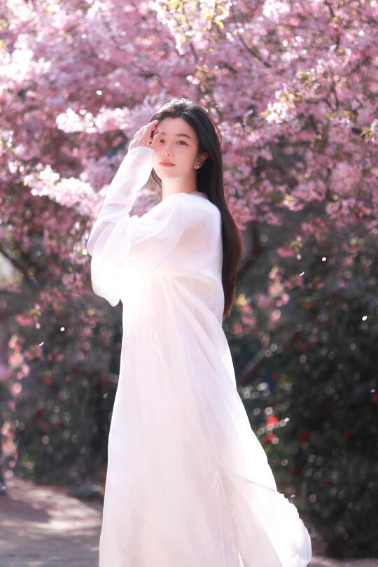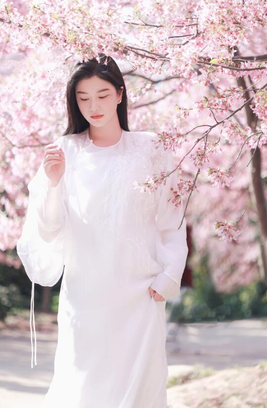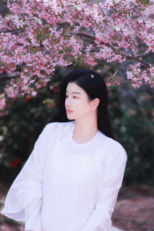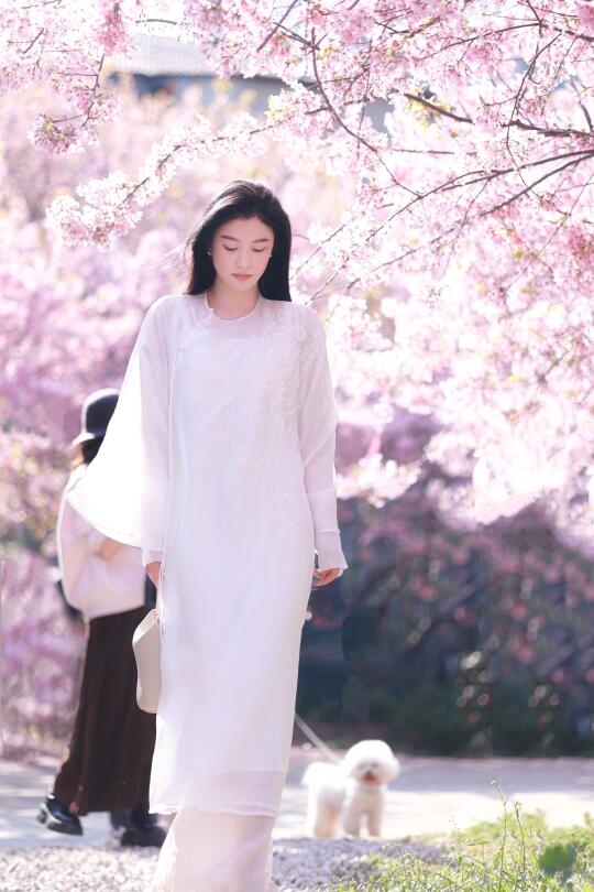 无意间与一只小狗同框,原来樱花树下站小狗也美。