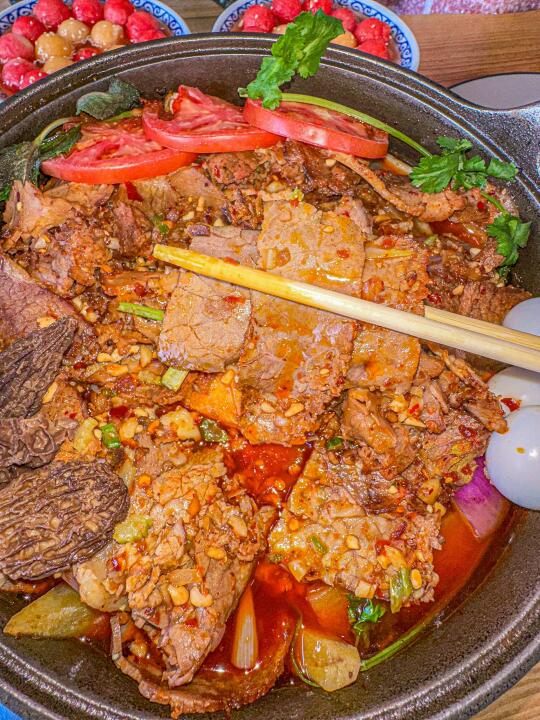 牦牛肉小香锅!大片的牦牛肉很劲道,肉也很多,里面还有很多的配菜,很丰富,两个人吃到撑