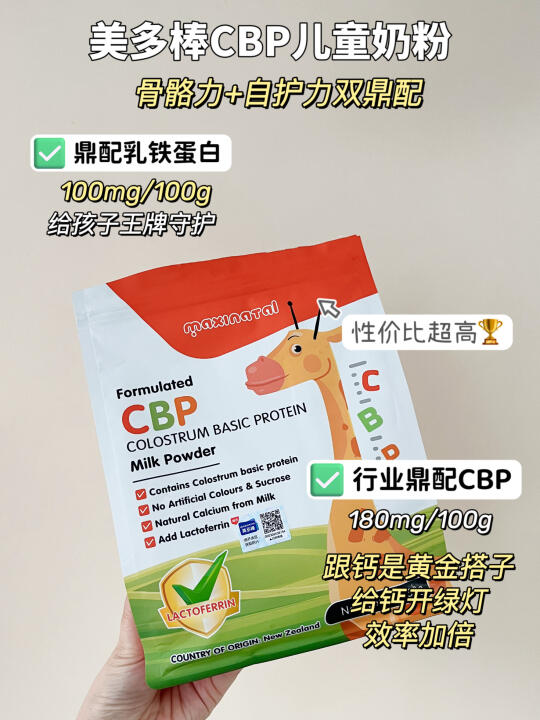 3岁之后正是孩子成长的关键期,这个时候🦴营养也要跟的上 我家宝宝现在小班了,每次看到宝宝在班上算中上等真的老母亲别提多开心了✌️~ 我家宝宝除了饮食上荤素搭配,营养均衡;保持一定量的户外活动;早睡早起保持充足的睡眠💤,我还有在给宝宝一直喝奶粉的 我家宝宝现在喝的是销冠美多棒CBP儿童奶粉,来源自新西兰 CBP含量也是杠杠的👍每100g奶粉里就有180mg CBP呢! 要知道CBP提取率只有万分之四,这个含量真的很良心!! 搭配了天然高钙,成长拉足马力 每100g奶粉还有100mg的乳铁蛋白呢! 1790mg/100g天然赖氨酸 也是很珍稀的骨骼营养 共同助力宝宝成长🎉~ 配料也干净,0香精、0蔗糖、0防腐剂、0速溶剂,给宝宝喝的安心 口感清淡,宝宝也爱喝,现在每天都要主动喝,看着宝宝大口喝奶的样子老母亲可开心了!每次都要囤满满的才安心!
