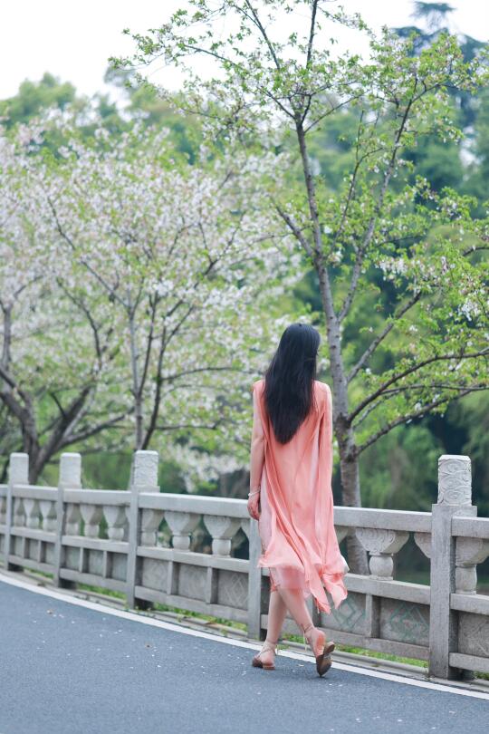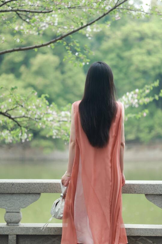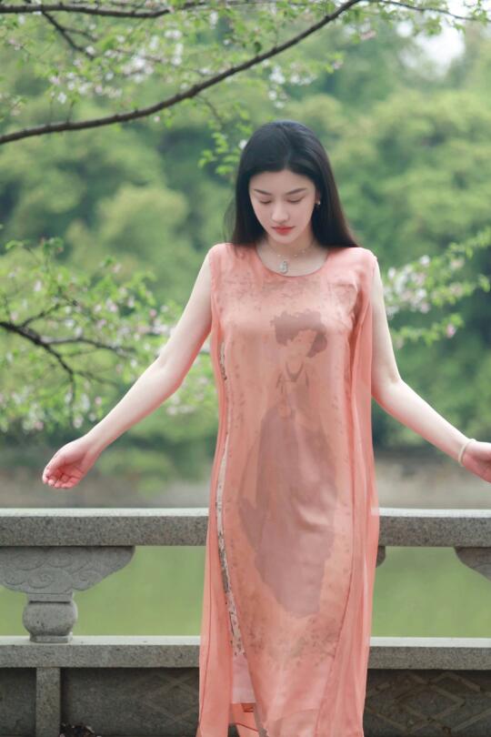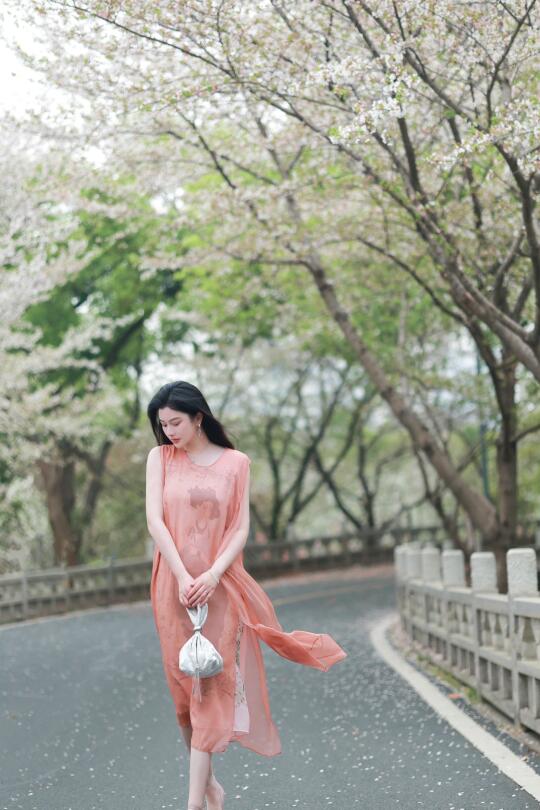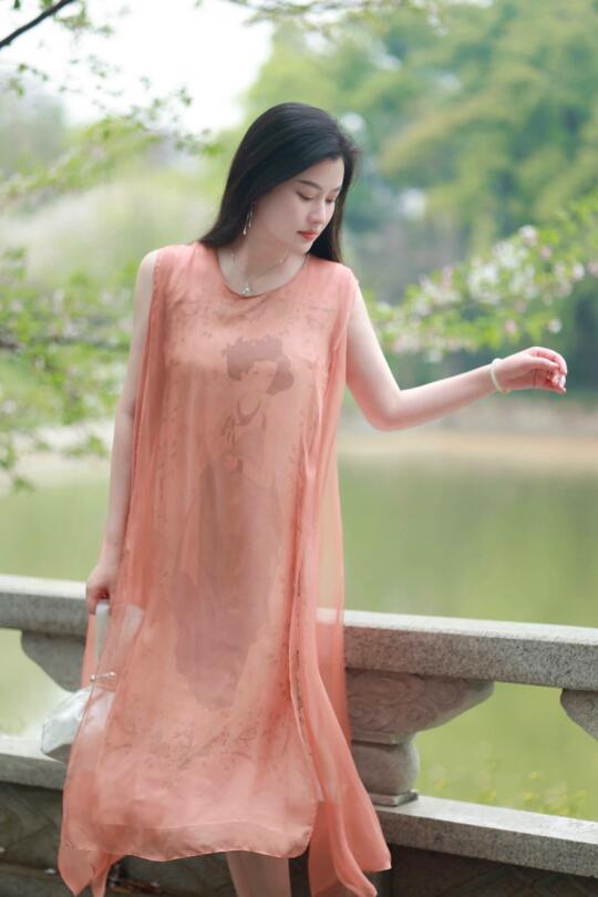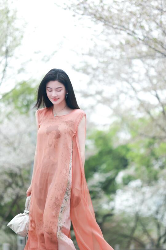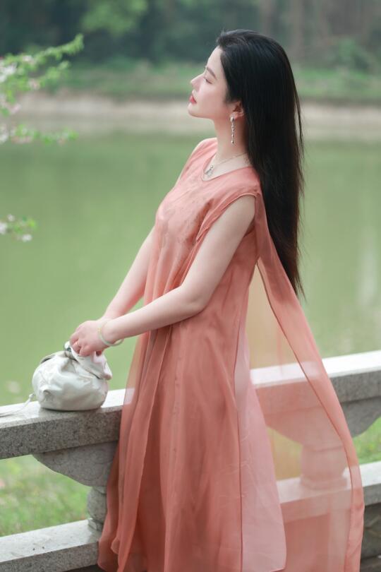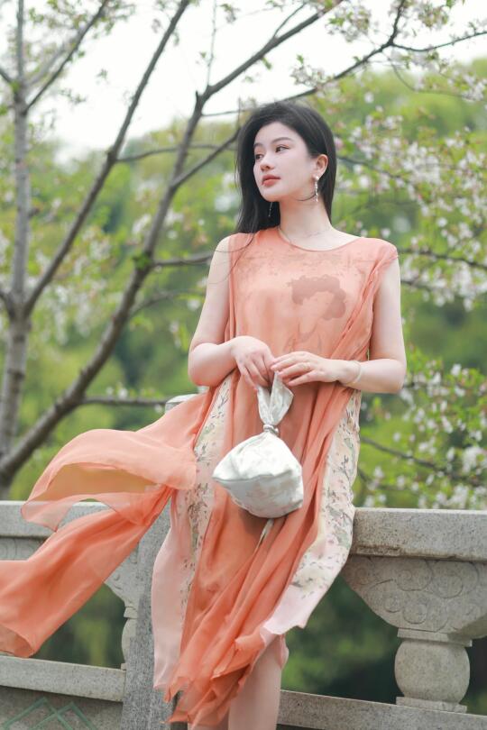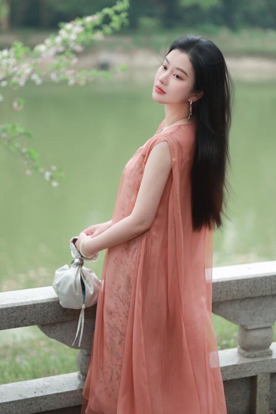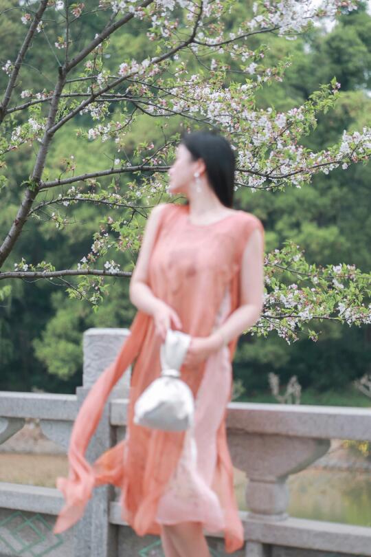珊瑚红纱裙轻抚温柔,