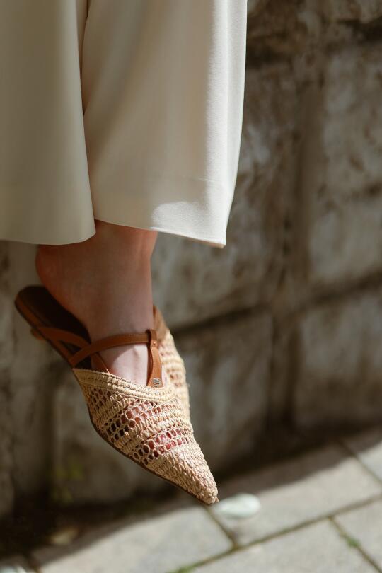 与轻松优雅的米色阔腿裤