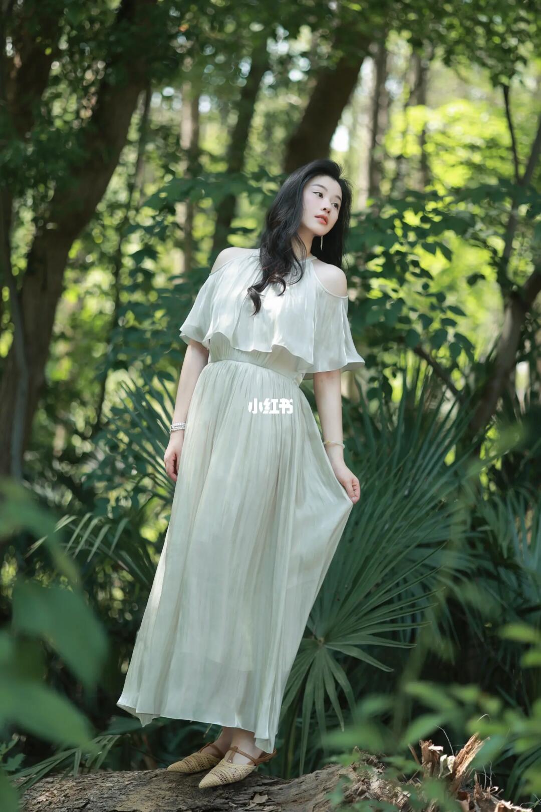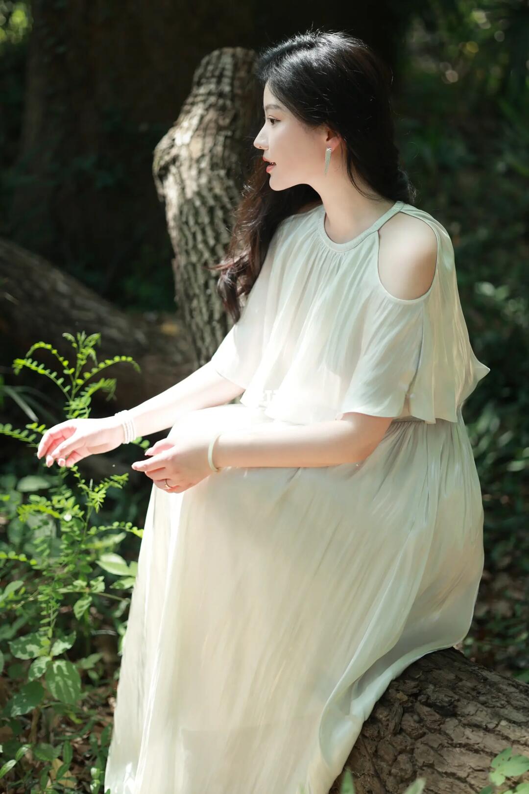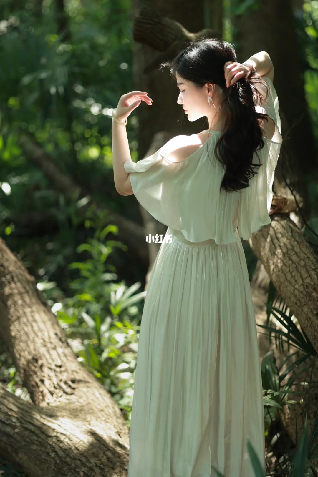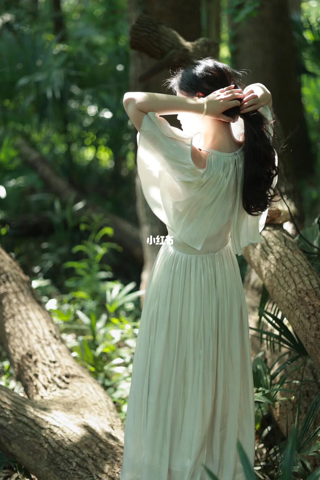 浮光散落在森林的绿意里,波光流淌在我的裙裾边。