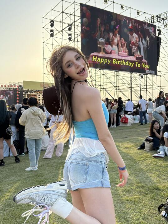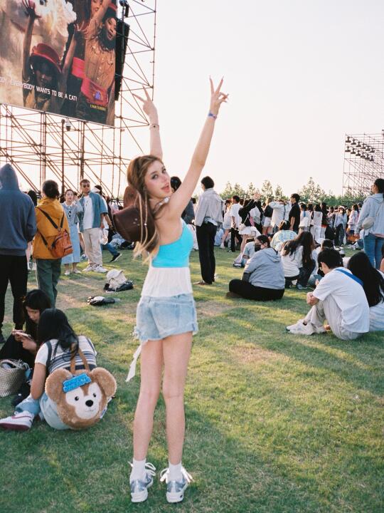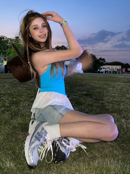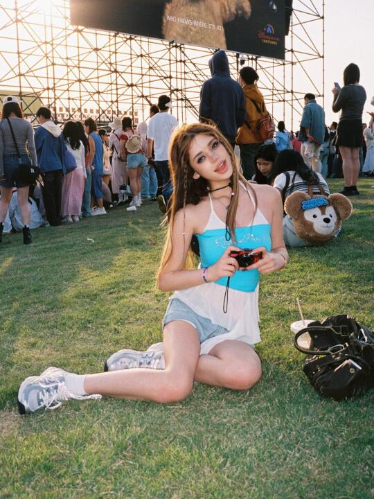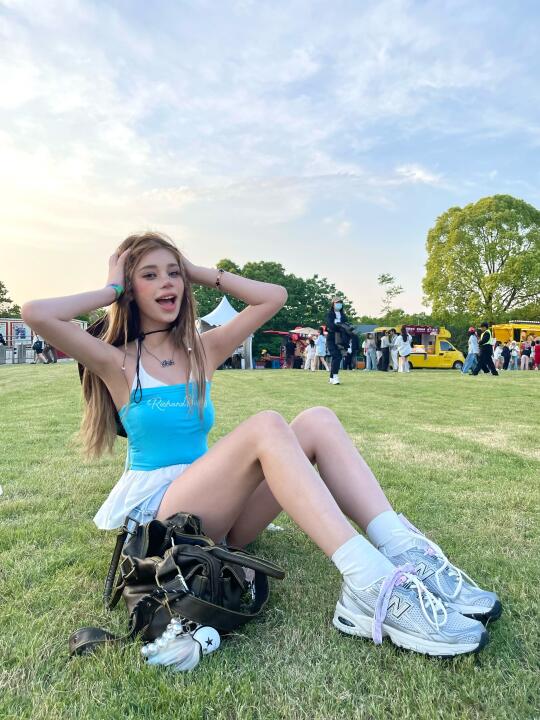 是谁说音乐节只能穿靴子? 这双明星同款NB 740直接封神! ✅ 复古灰白配色超百搭,辣妹风/Y2K统统拿下 ✅ 鞋底回弹超给力,主舞台蹦到散场还能跳 真实体验:从下午3点站到凌晨1点,一点都不累脚 蓝色短t+高腰牛仔短裤裤+荧光色配饰 一整个音乐节氛围感拿捏