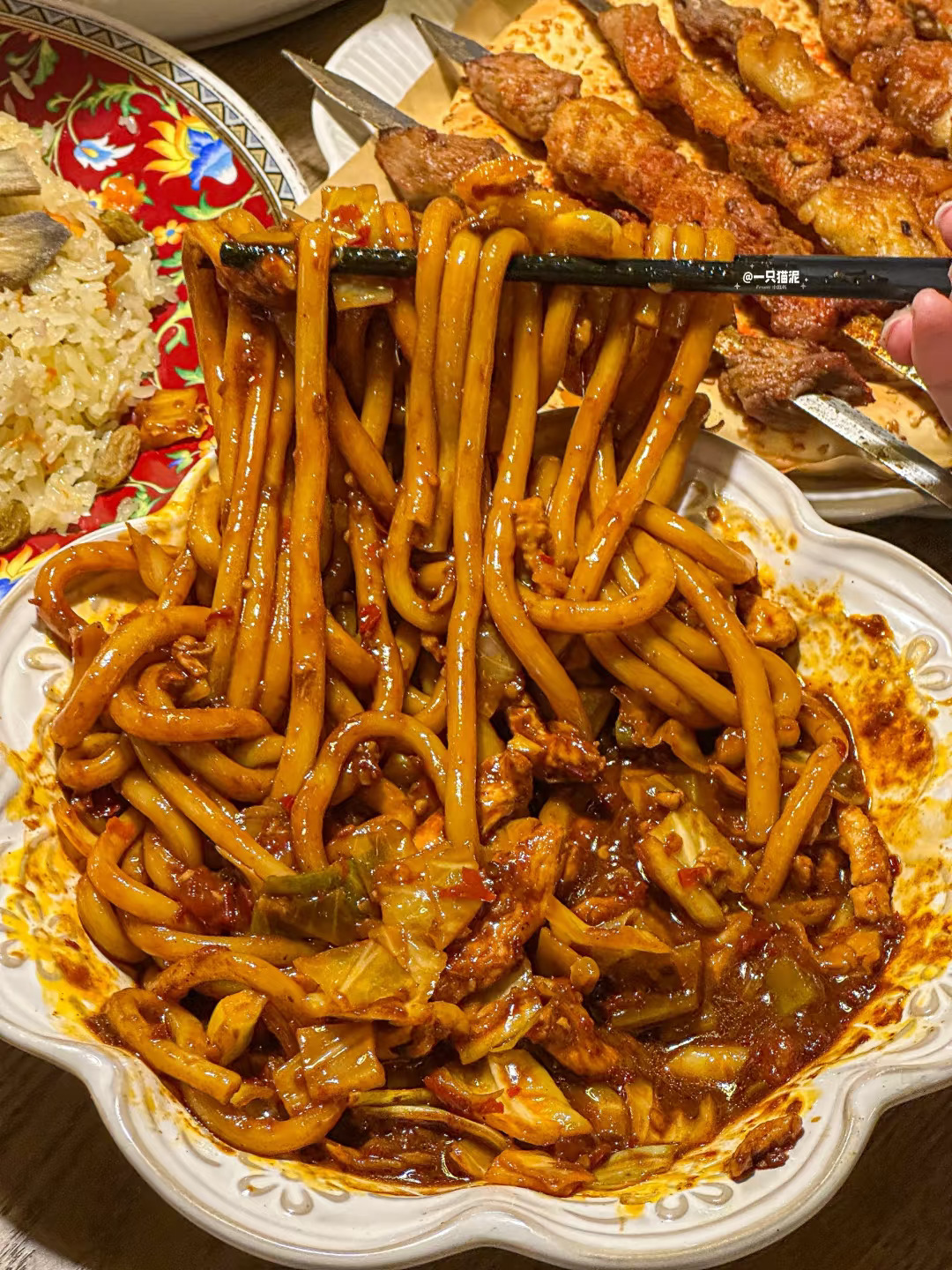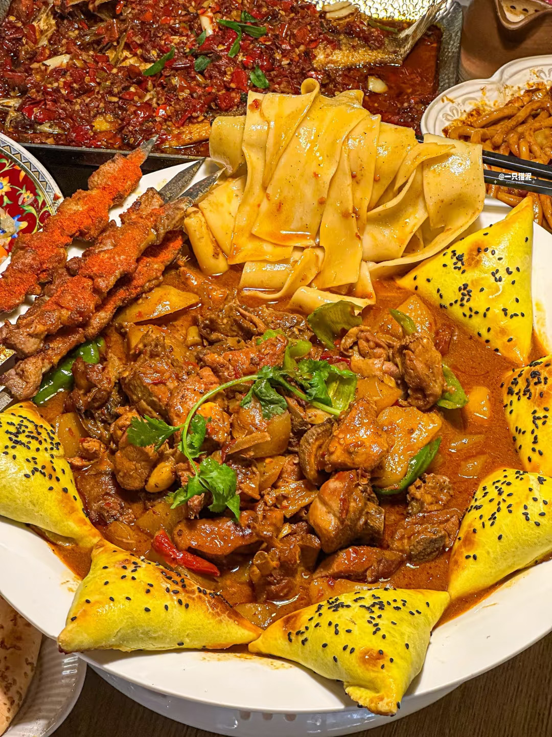 新疆大盘鸡🥘,鸡肉+土豆+宽面,黏糊浓郁贼香~