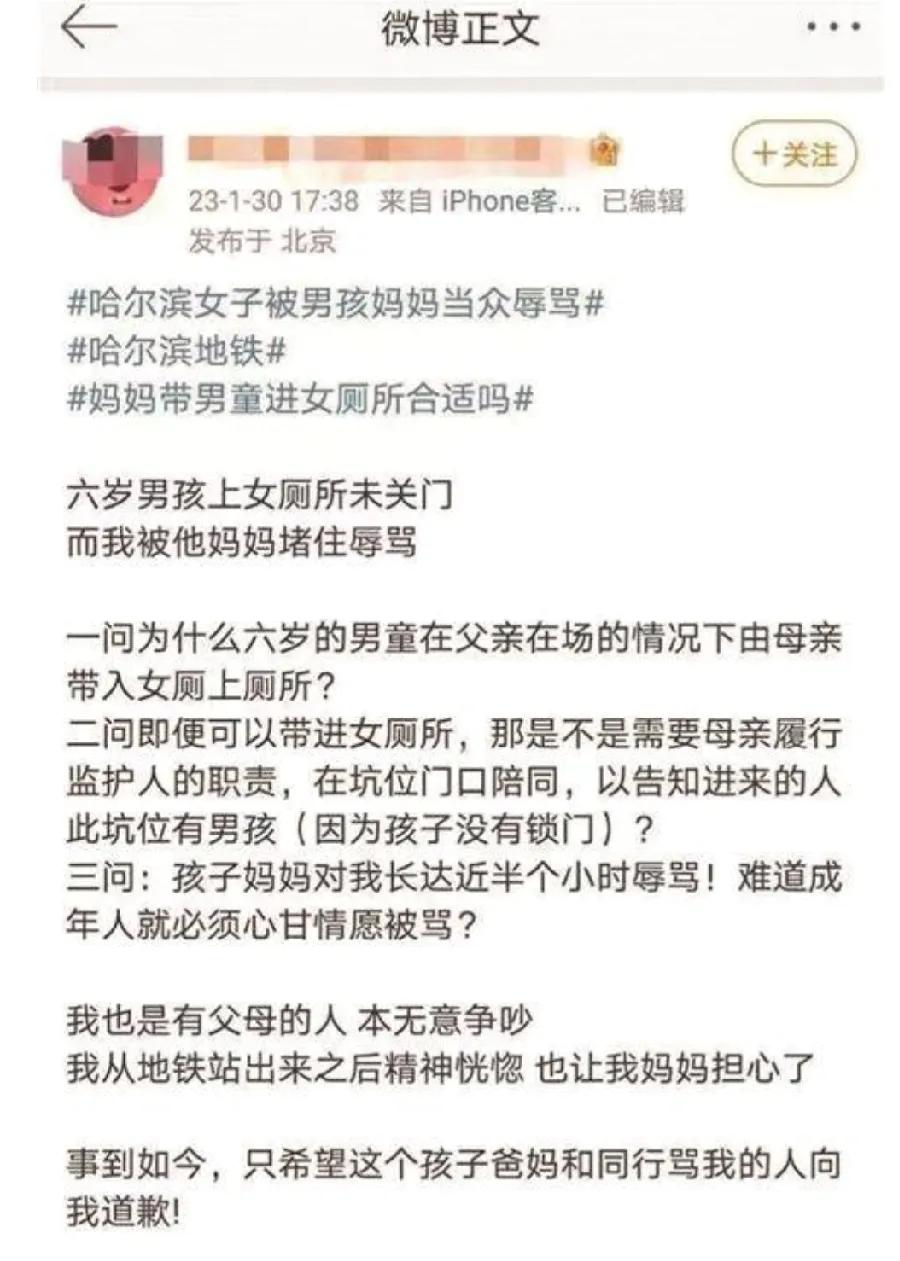 昨天,一则“妈妈带7岁男童进女更衣室”的新闻登上热搜! 说是一位妈妈带着7岁的男童进女更衣室洗澡换衣服,同室的女孩指责妈妈不应该把这么大的男孩子带进女女更衣室,觉得自己被冒犯了,男孩妈妈言辞激烈与女孩发生争执,最后还动手打人。 双方争执不下,已进入法律程序。 我看到此事的第一感觉是:怎么又来! 这不是第一次妈妈带男中童进去女性场所的热搜事件。 上次的妈妈在商场带男孩子进女厕所,上上次的带男孩子进女浴池,不说很多,但也不少,怎么还是没能警醒那些妈妈们呢? 为什么这些妈妈还要这样自取其辱呢? 反观这几次的热搜事件,哪位妈妈不是被全网骂? 既如此,想想办法呀! 可能有人会说我站着说话不腰疼,我想说的是我自己亲身经历过。 那次,我如以往带着孩子进浴室,工作人员阻止我,理由是:孩子太大了,影响其他女客人。 当时,一听我就怒了,我说:我还以才4岁多点,怎么就大了? 人家说:但他个子高呀,别人就会以为他年龄不小了。 一切都准备好了,结果不能洗,关键还没办法解决,因为家里没有其他人了。 我生气、愤怒,略带着难堪回家了。 回到家后,我仔细想了想,这确实是个问题,毕竟孩子4岁了,性别也在萌芽,再跟我一起洗澡,不合适。 于是,至此之后,我都会跟孩子爸爸提前沟通计划,让他抽出时间带孩子洗澡。 实在不行,我会多花些钱,去包间。 商场逛街时,上厕所的问题,一般我会让他先进去,自己守在门外。换我进去时,我会跟商场工作人员沟通,让他帮忙照看一会,一般的商场工作人员都很有爱心,愿意帮忙,反正我还没被拒绝过。 于是,妈妈带异性孩子的麻烦,就这样解决。 我也是宝妈,也能理解妈妈群体的种种艰辛,但是“艰辛”不是我们做错事的理由,“宝妈”的身份也不应该成为我们的护身符,帮我逃避一切。 有问题去解决,而不是出现问题跟人狡辩、对骂甚至动手。 你们觉得呢? 宝妈