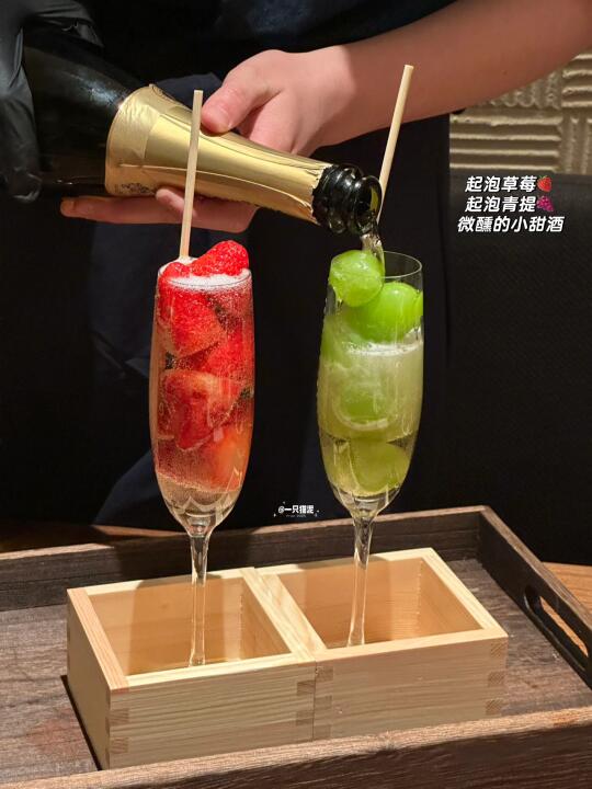 草莓&青提起泡酒🍾,上桌仪式感十足,清爽微醺。