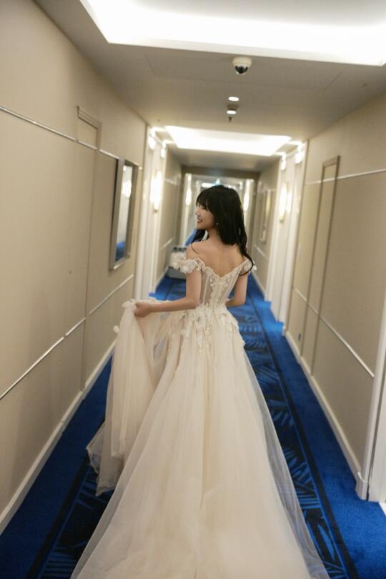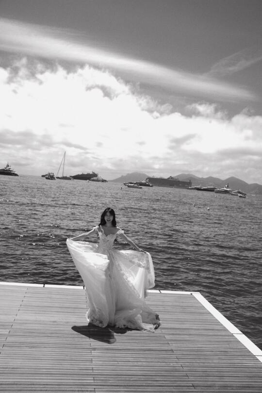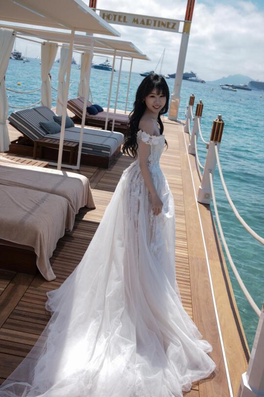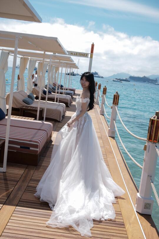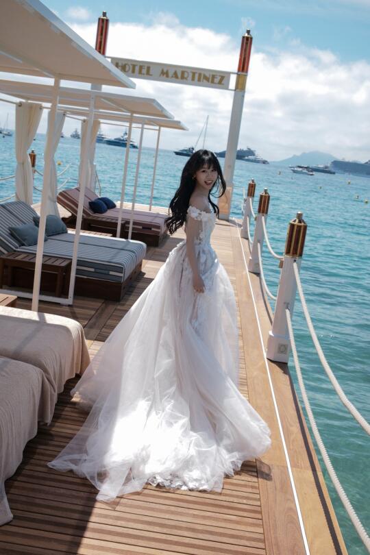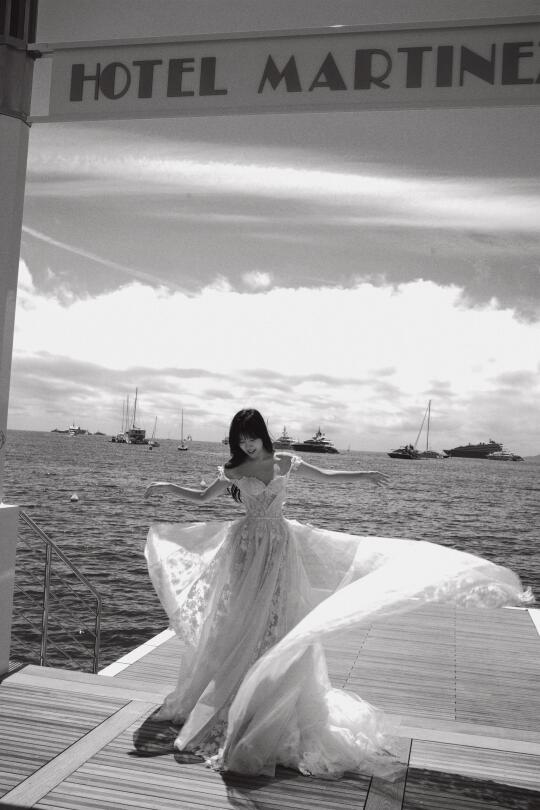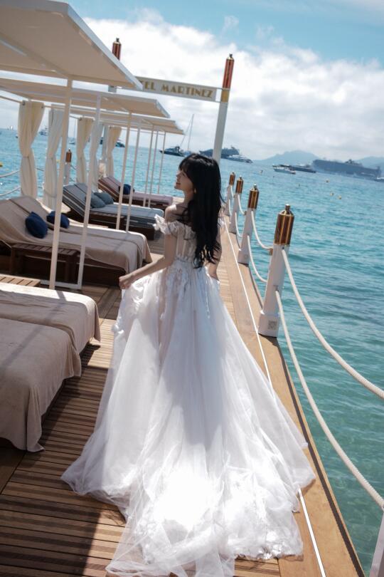 在戛纳的空闲时光 前一天才完成婚礼的徐老师又换上了一条婚纱 在戛纳的海边又拍了一组婚纱写真 只不过这次没有航仔hhhhh