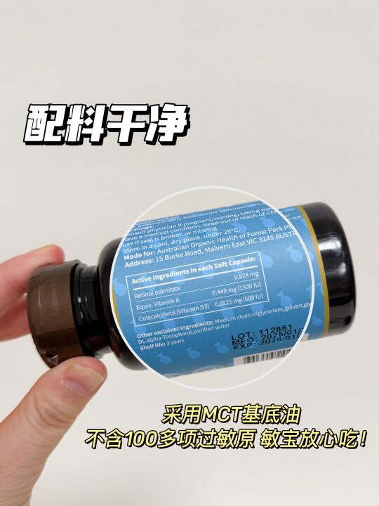 后来我上网做功课都说健敏思AD不错,mct基底油,温和好吸收,而且没啥过敏原,敏宝也能放心吃,我就买了1瓶回来。