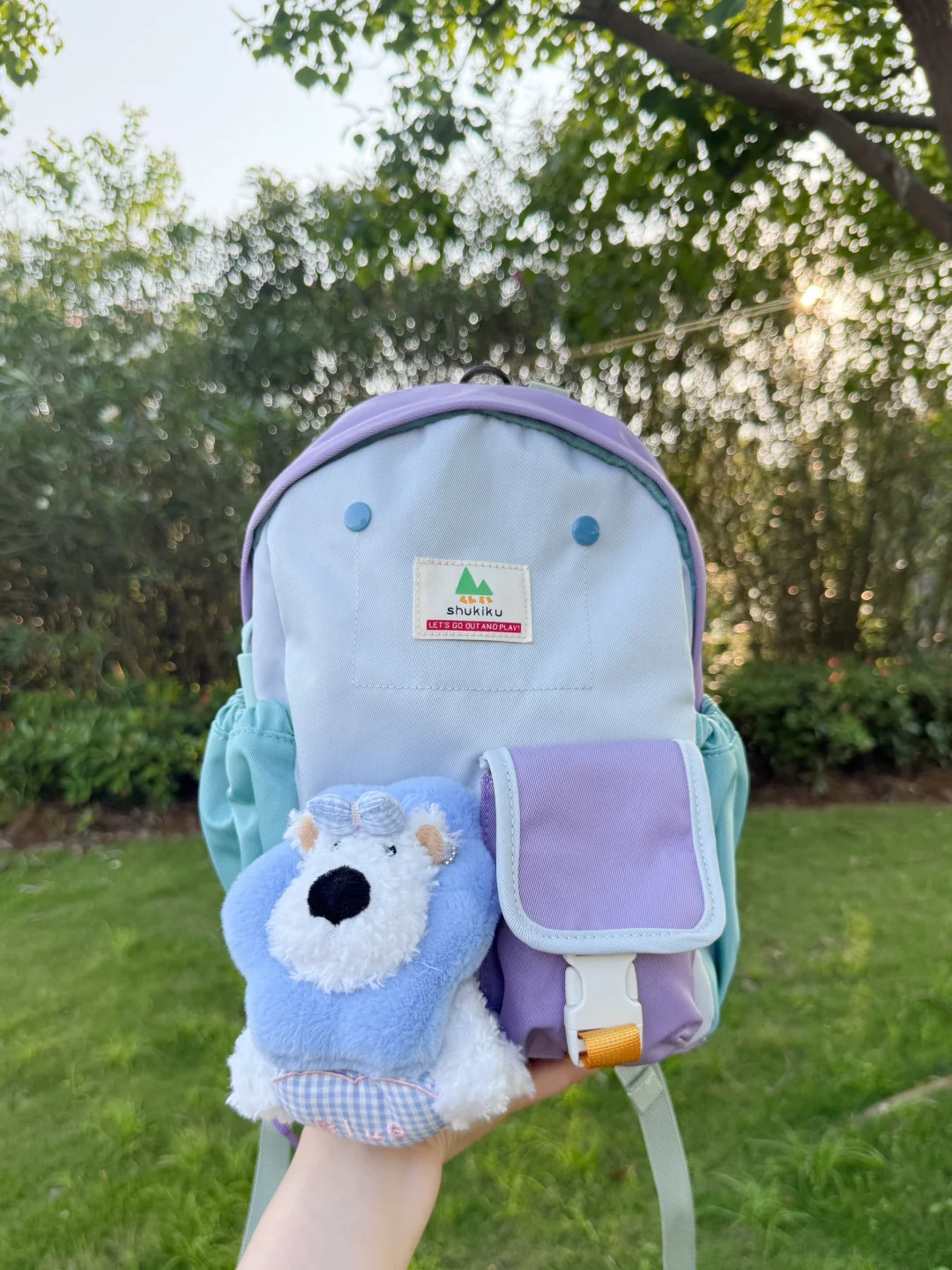 趁着宝宝放学,带宝宝去湿地公园转转啦 背上新书包🎒,自带玩偶🧸 玩偶还可拆卸,宝宝可喜欢啦 喊着我咔咔咔给她拍照📷