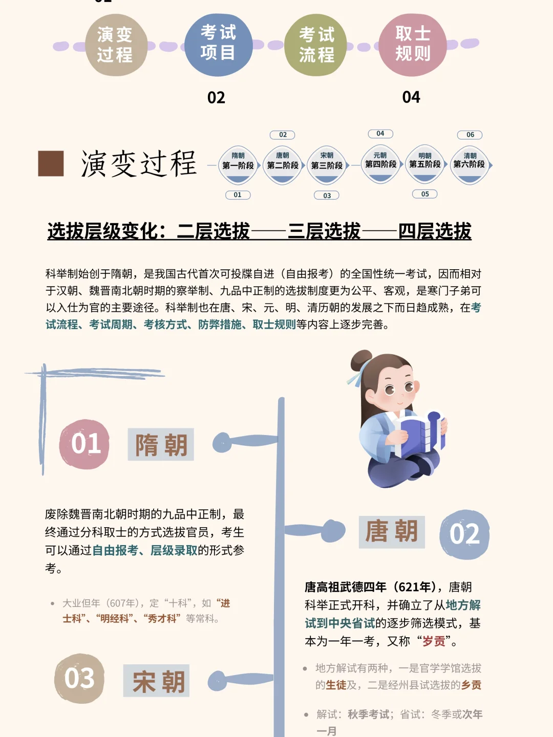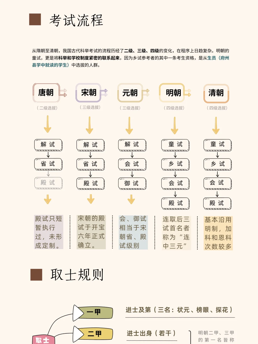 总之,历经数代更迭,除考试流程、防弊措施外,科举制在考试周期、考核方式、取士规则等内容上皆有不同程度的变化,尽管因时代的局限而存在一些难以避免的不足之处,却对完善古代考试体系、推动教育普做出了巨大的贡献。