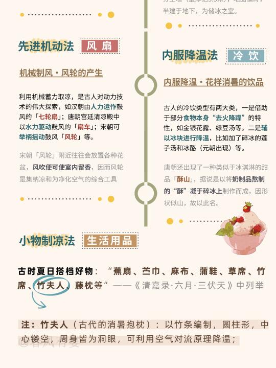 古人在研究纳凉技术上,也有一套独特的心得,扇子、扇车、风轮、凉室、冰饮、以及各种清凉小物,都是古人尝试过的纳凉工具。