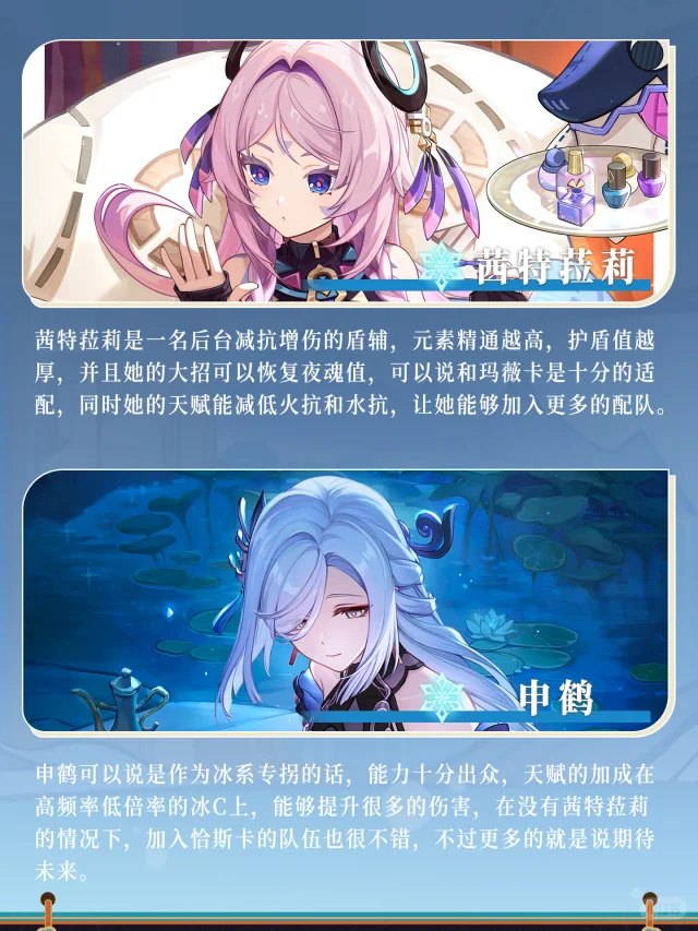 分别是盾辅茜特菈莉+冰专辅申鹤+群奶夏洛蒂