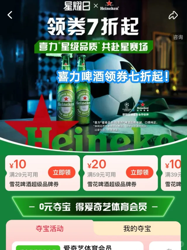限时抢七折优惠券,熬夜看球有冰啤酒来搞气氛!